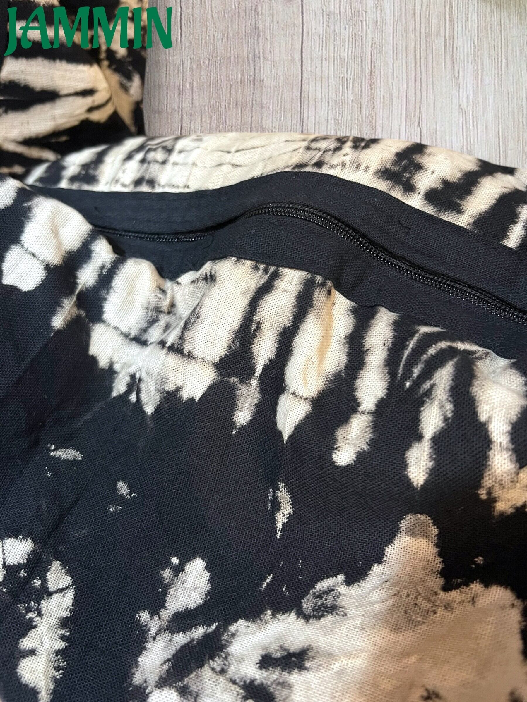 黒色ベースのタイダイ生地を使ったショルダーバッグです。