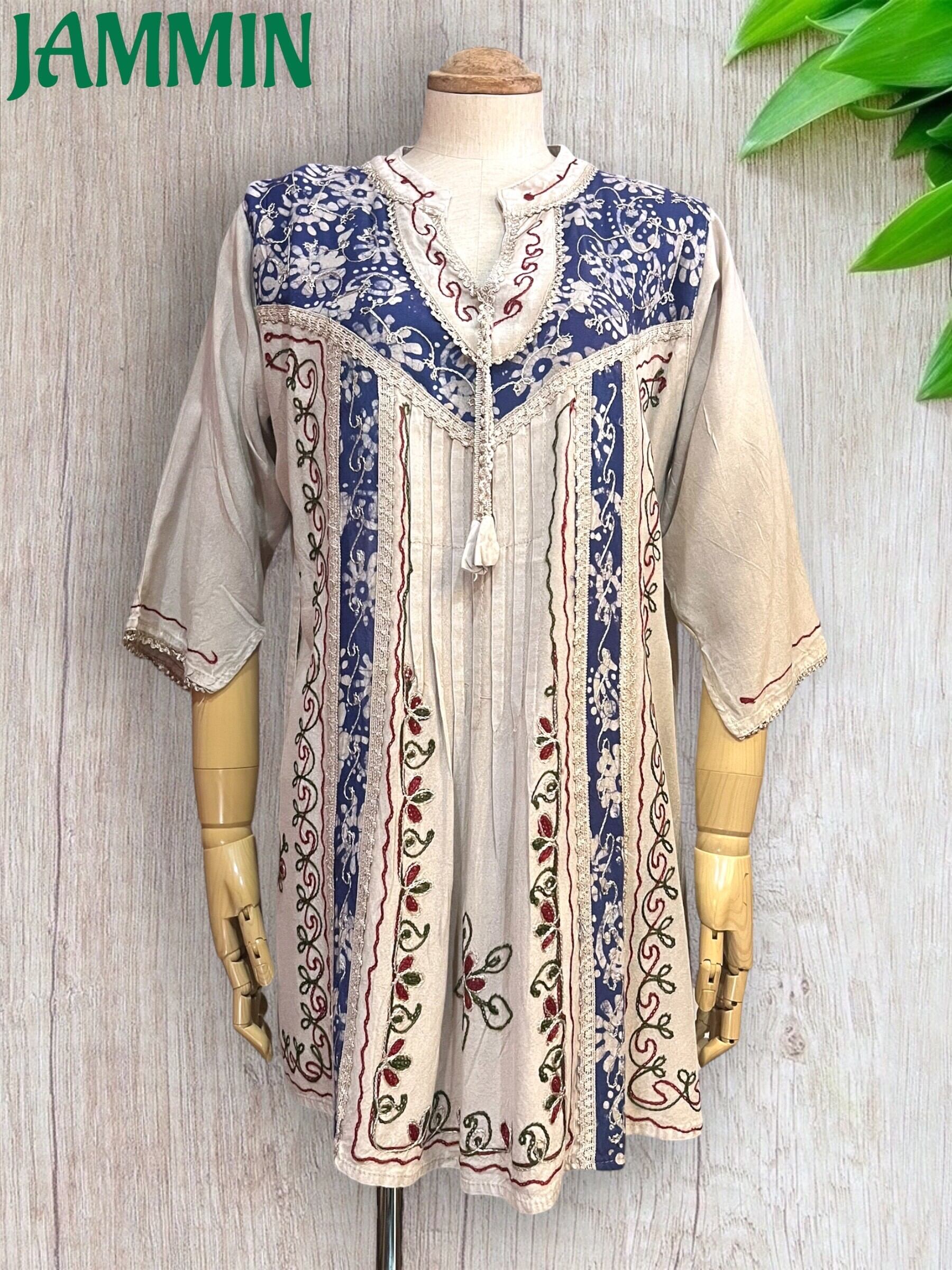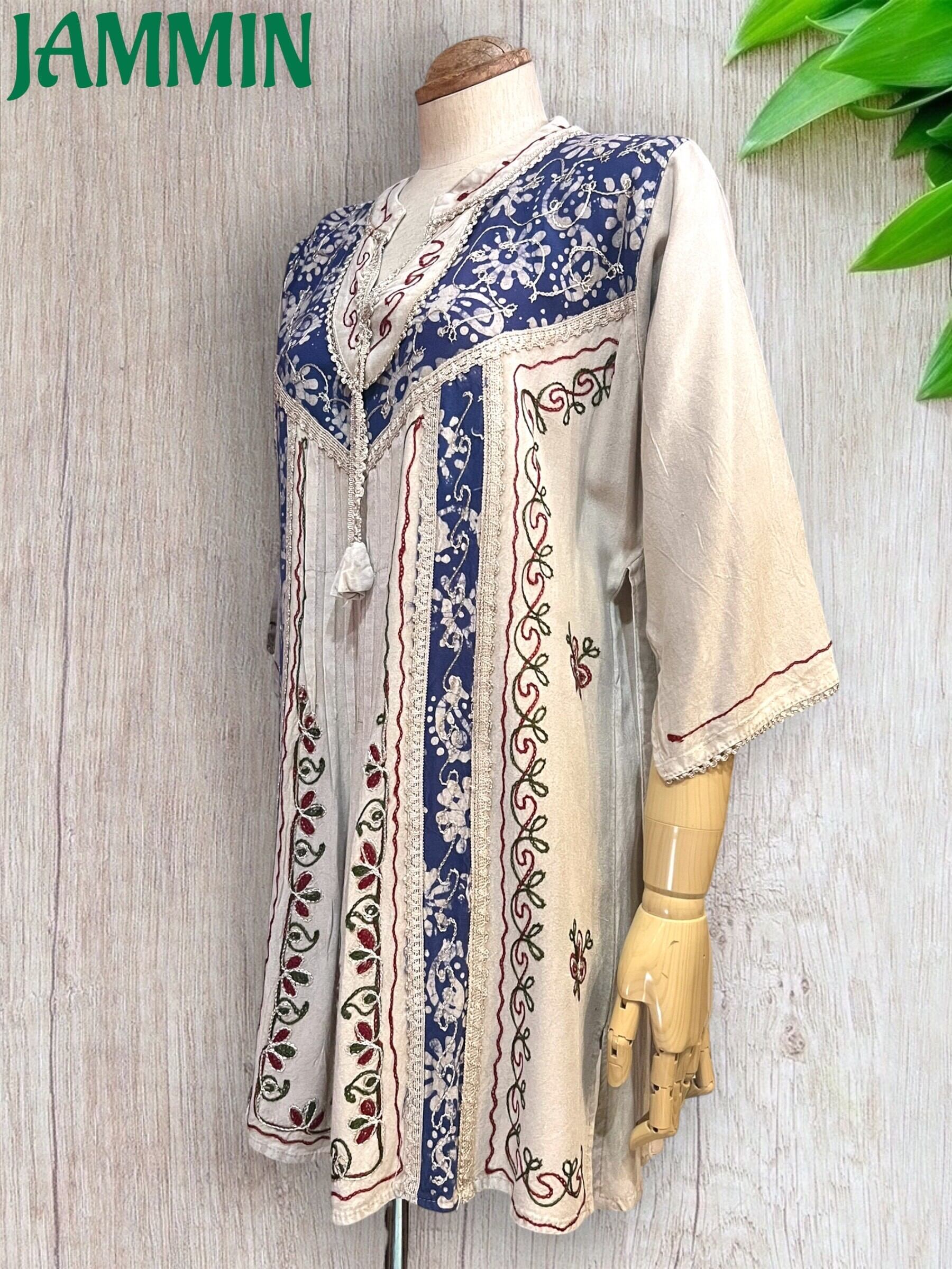 刺繍やろうけつ染め、コードレースなどが使われたアジアンなチュニックです。