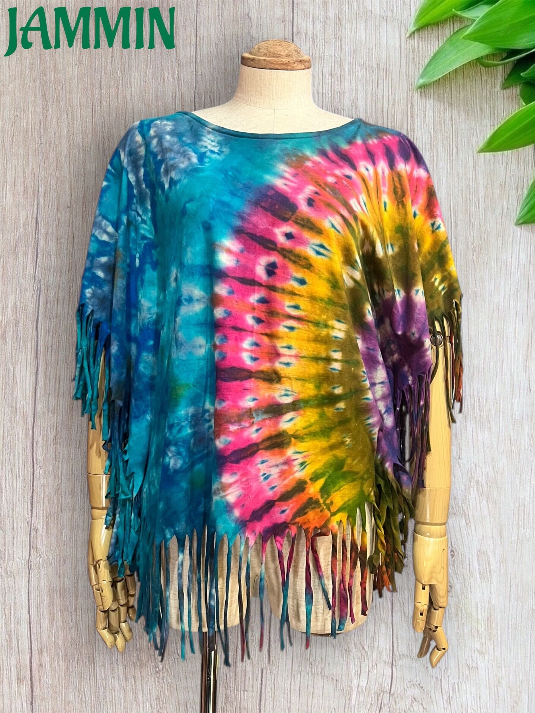 ポンチョ/アジアン/アフリカン/エスニック/サイケ/ヒッピー/衣装/フェス/個性派/タイダイ/タイダイポンチョ/絞り染め/ライブ衣装/ロングポンチョ/アジアンファッション/