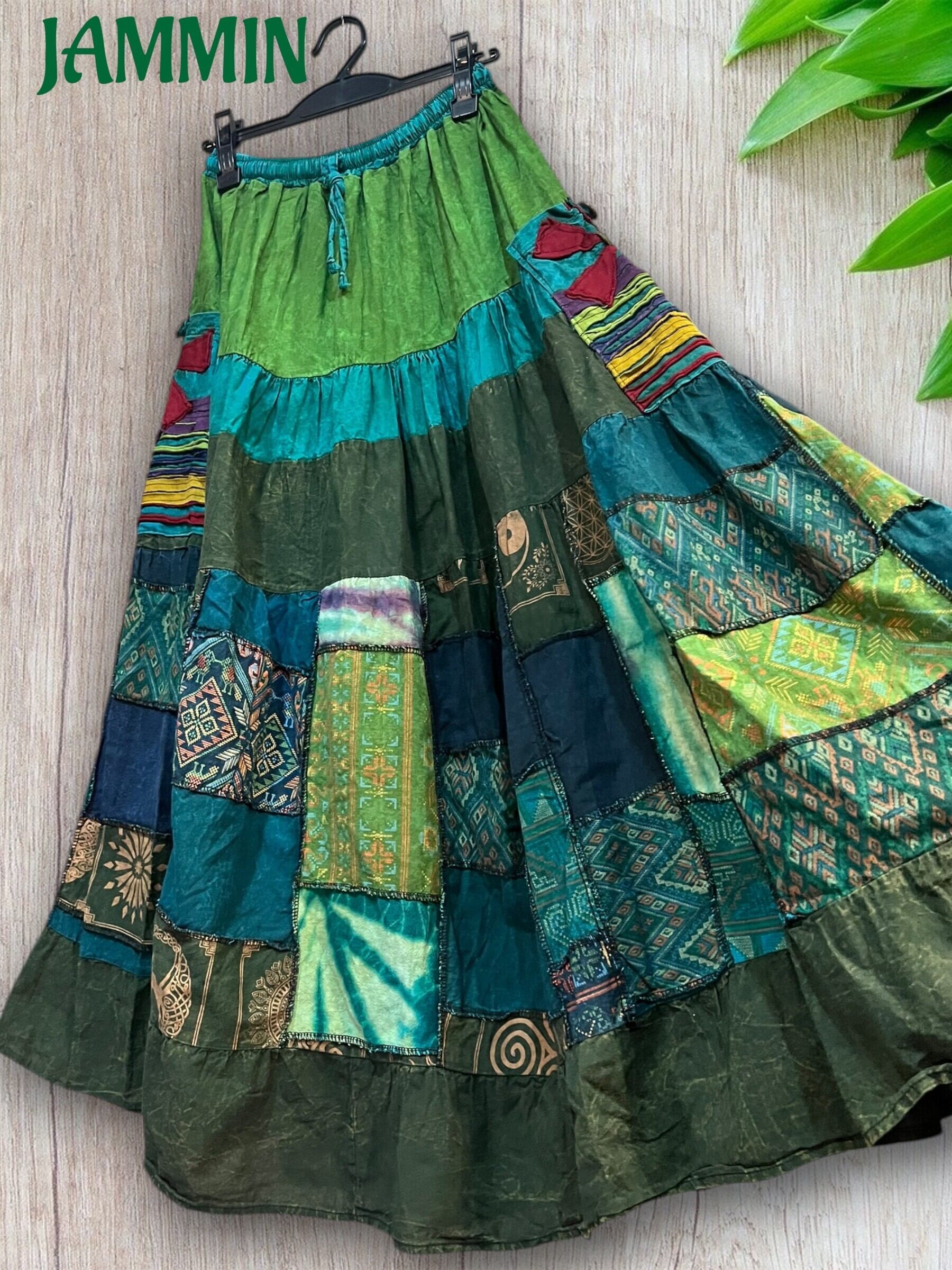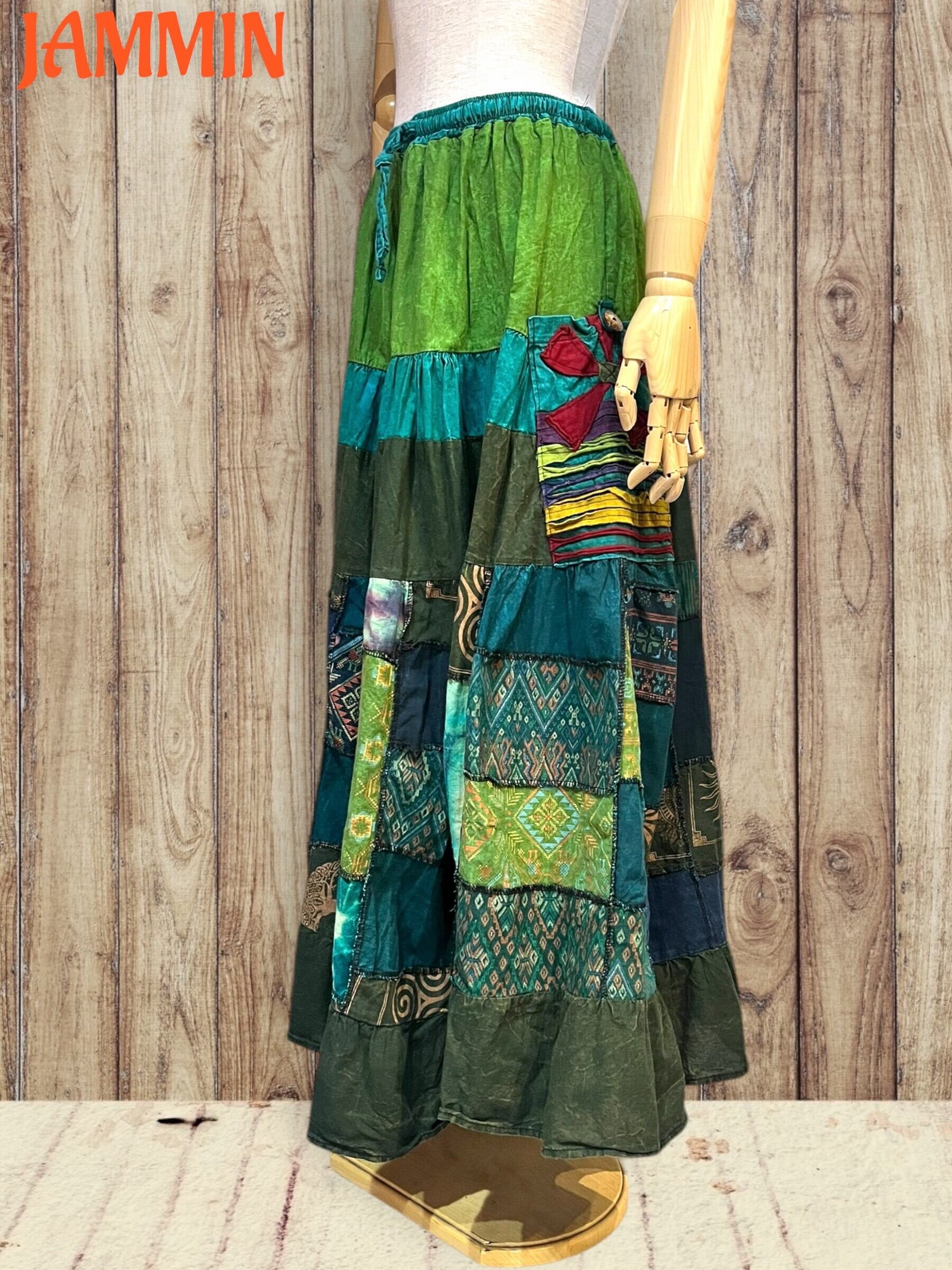 ロングスカート/フレアスカート/アジアンスカート/スカート/マキシ丈スカート/アジアン/エスニック/ヒッピー/アフリカン/サイケ/衣装/ゆったり/柄スカート/リゾート/フリーサイズ/大きいサイズ/パッチワークスカート