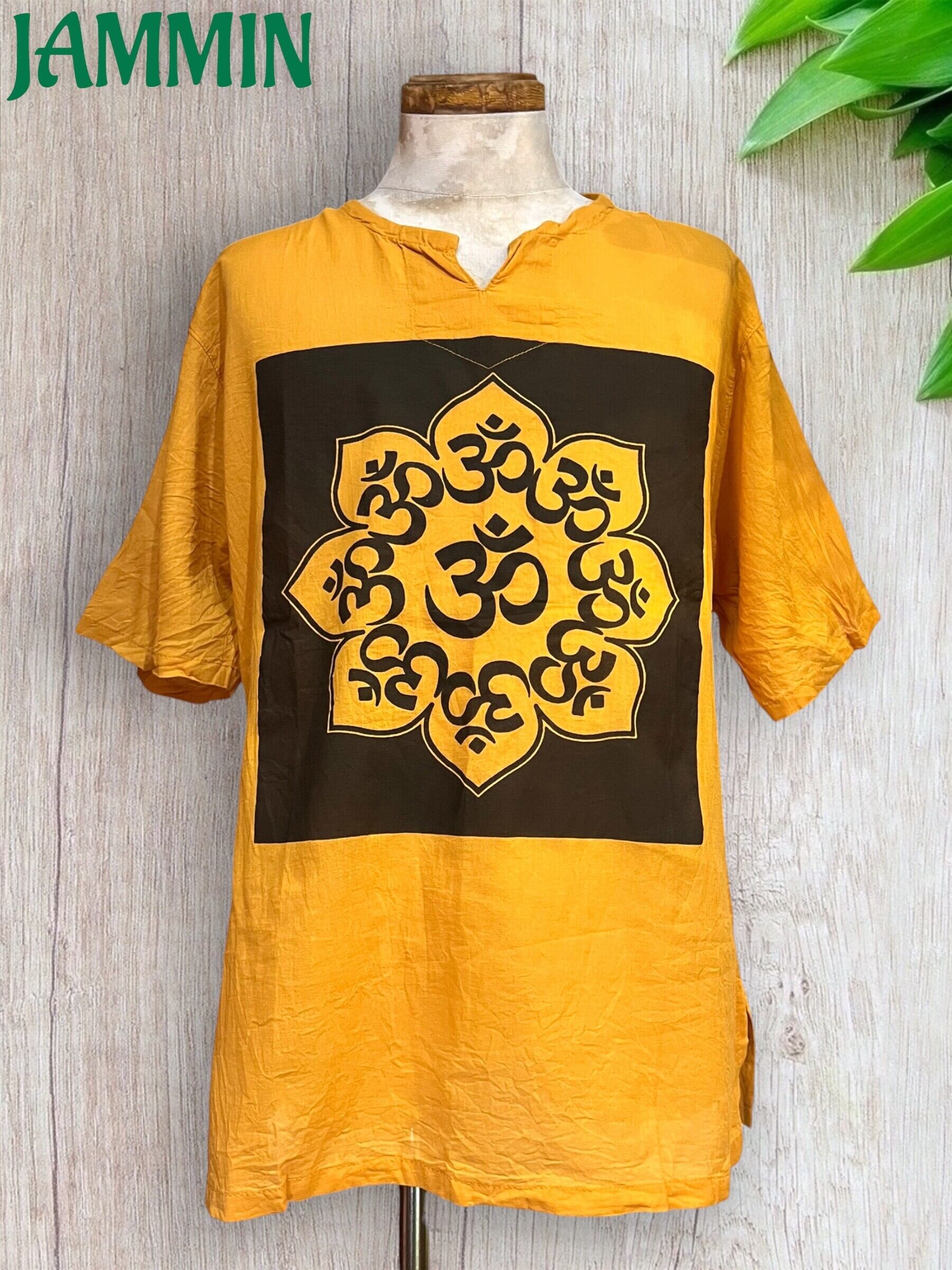 アジアン/エスニック/ヒッピー/サイケ/クルタ/男女兼用/半袖/衣装/ライブ衣装/イベント衣装/ゆったり/アジアンファッション/メンズエスニック/個性派ファッション/ヒッピーファッション/エスニックファッション/瞑想/ヨガ/神様/魔除け/オーム/OM