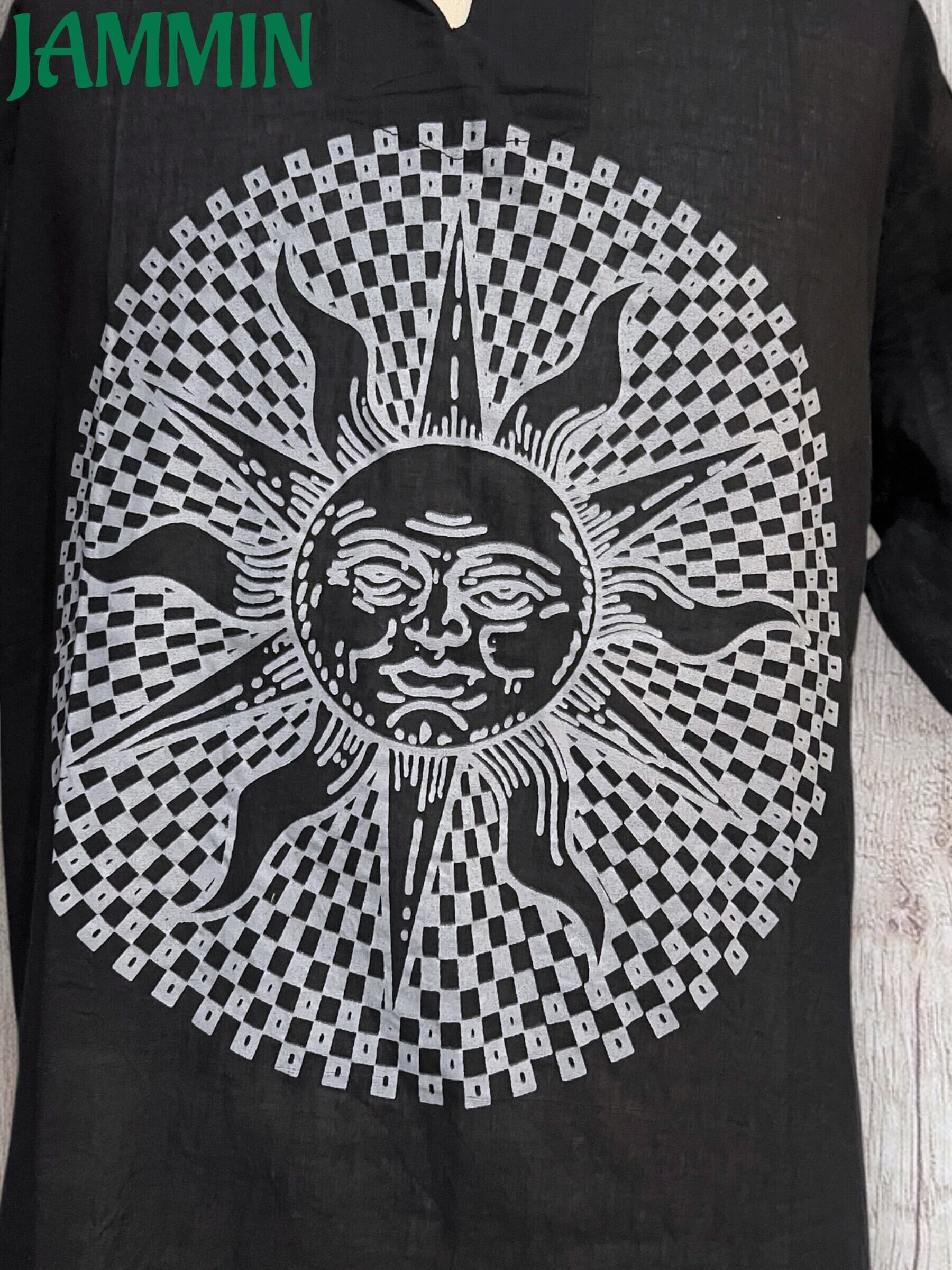 アジアン/エスニック/ヒッピー/サイケ/クルタ/男女兼用/半袖/衣装/ライブ衣装/イベント衣装/ゆったり/アジアンファッション/メンズエスニック/個性派ファッション/ヒッピーファッション/エスニックファッション/瞑想/ヨガ/太陽/サンフェイス