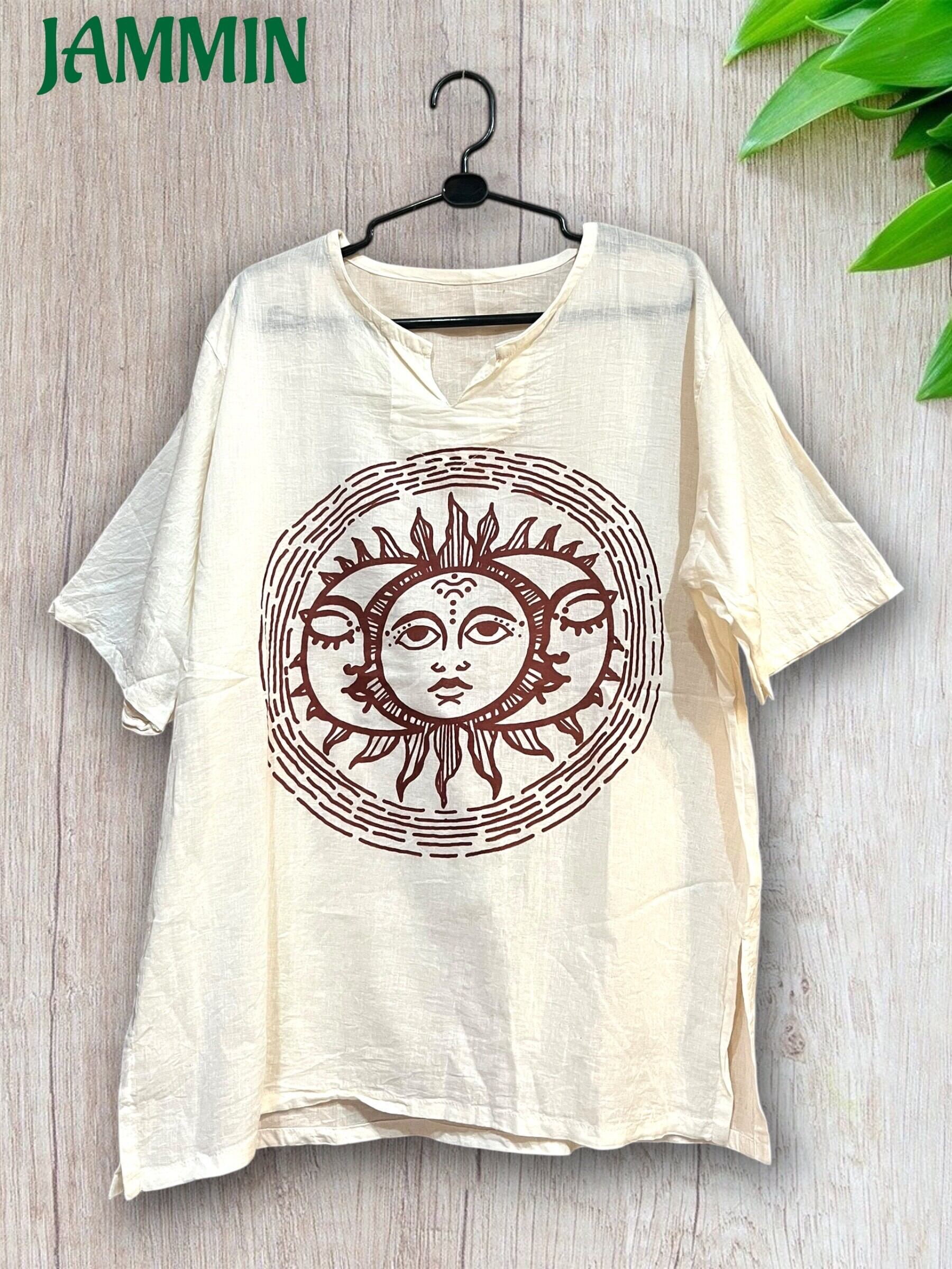 アジアン/エスニック/ヒッピー/サイケ/クルタ/男女兼用/半袖/衣装/ライブ衣装/イベント衣装/ゆったり/アジアンファッション/メンズエスニック/個性派ファッション/ヒッピーファッション/エスニックファッション/瞑想/ヨガ/太陽/サンフェイス/ムーンフェイス/サン&ムーン