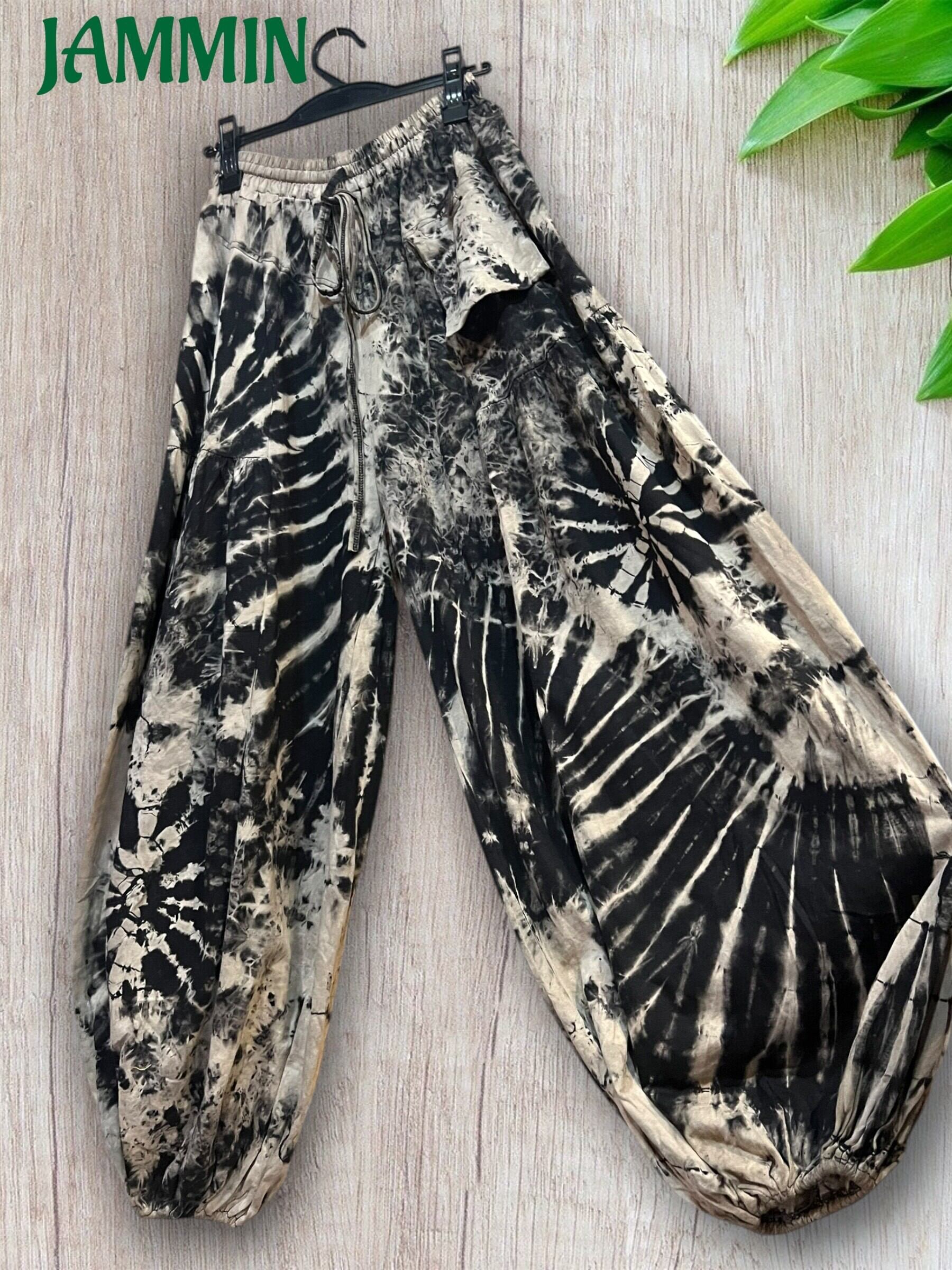 たっぷりした布使いで、裾がゴムで絞ってあるタイダイアラジンパンツです。