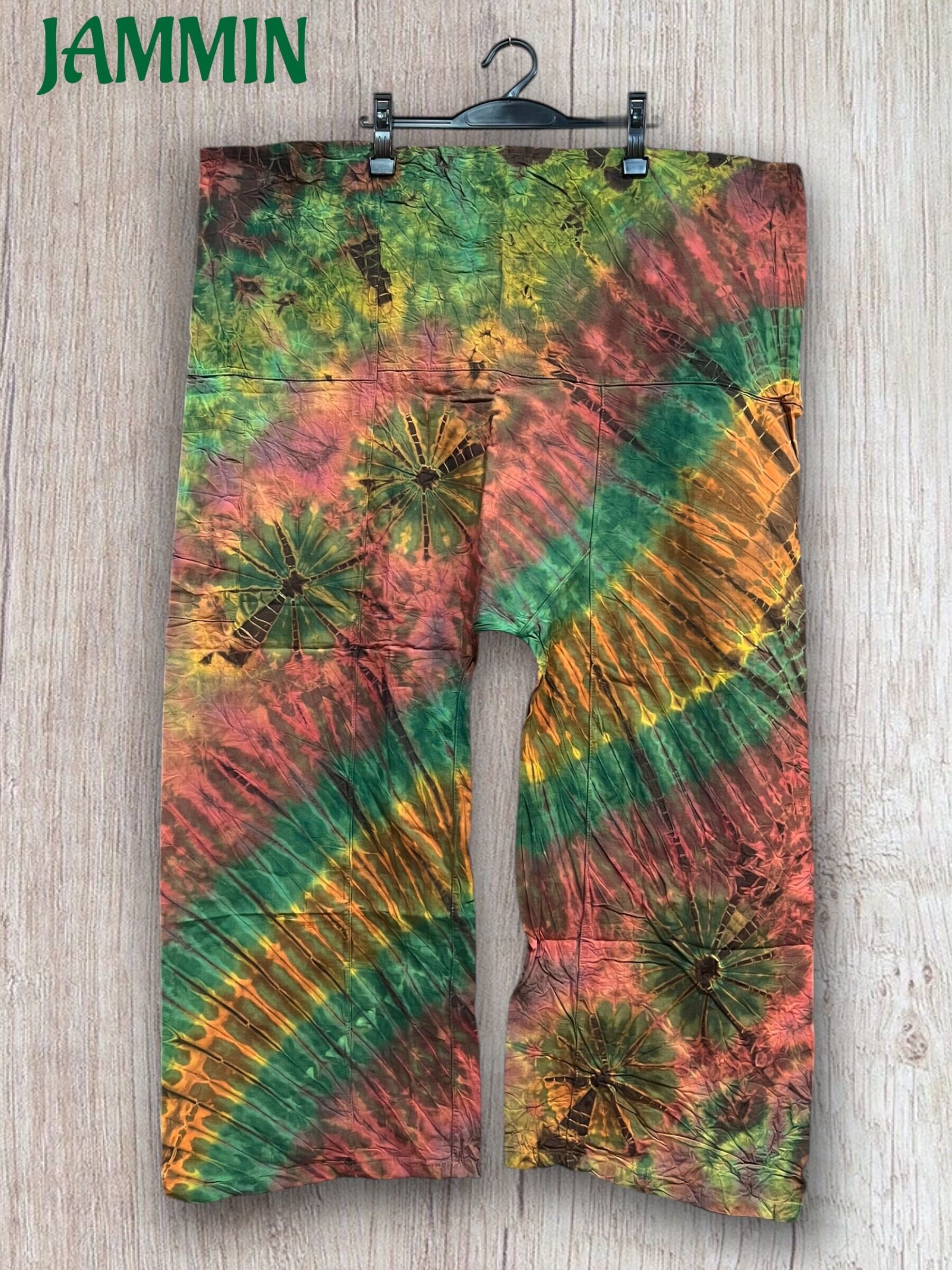 グリーン×黄色×オレンジなどのミックスカラータイダイタイパンツです。
