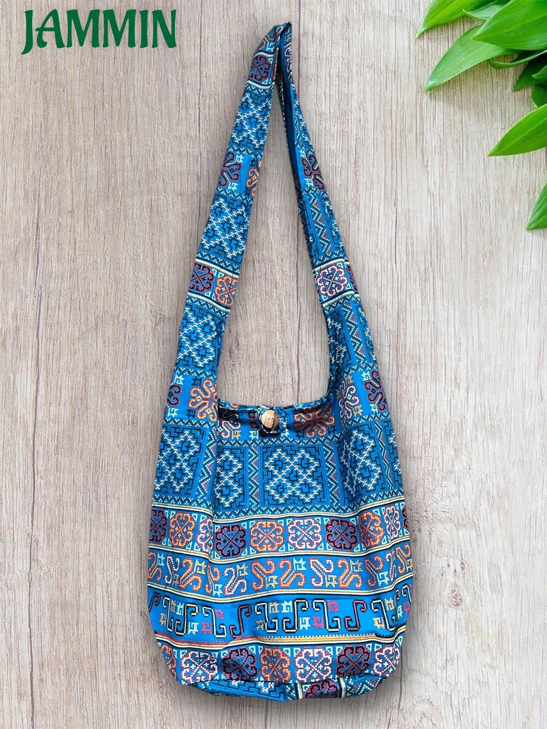 タイの少数民族モン族の刺繍プリント柄生地を使った斜め掛けバッグです。