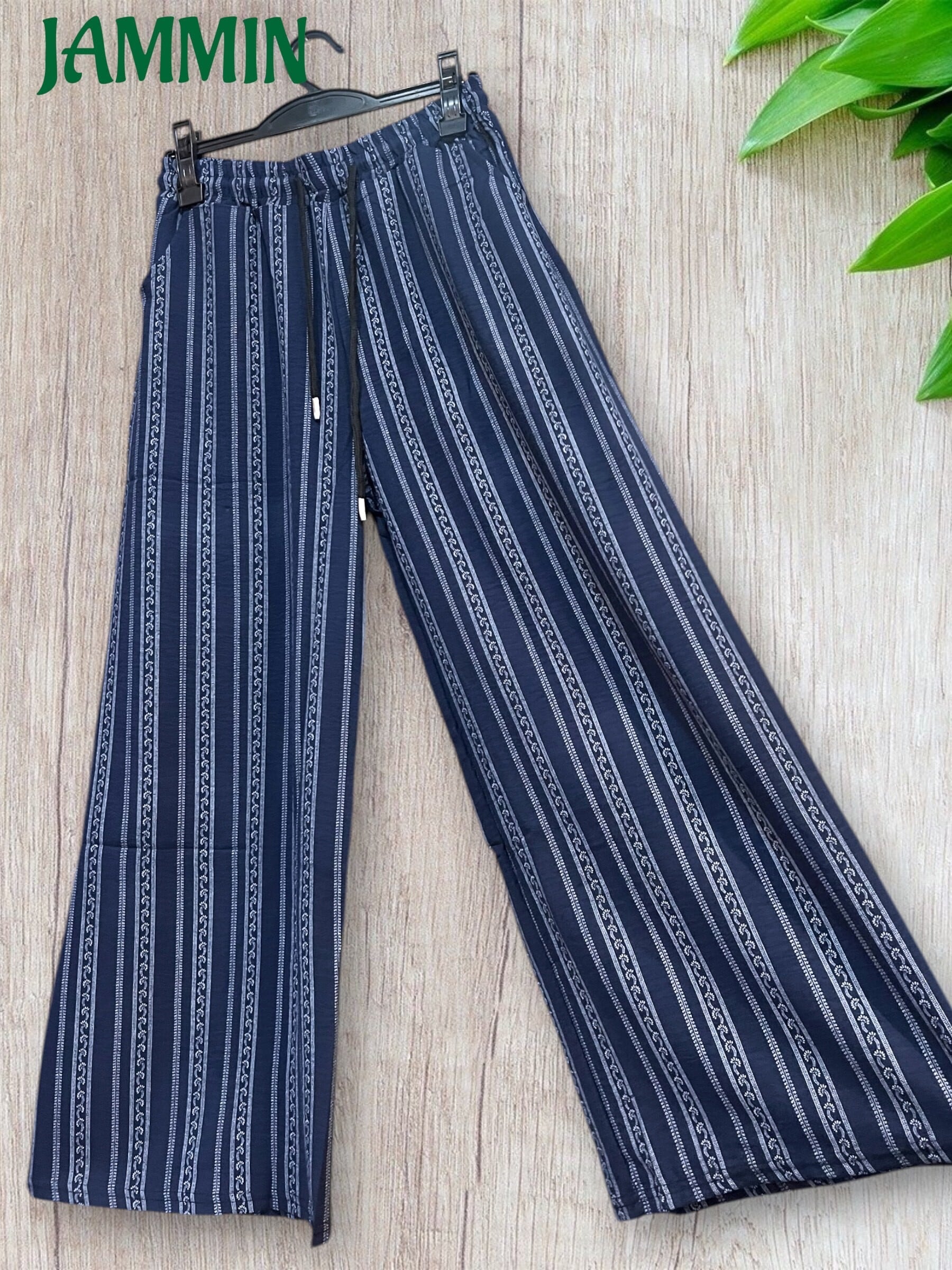アジアンストライプ柄ゆるめパンツ ネイビー