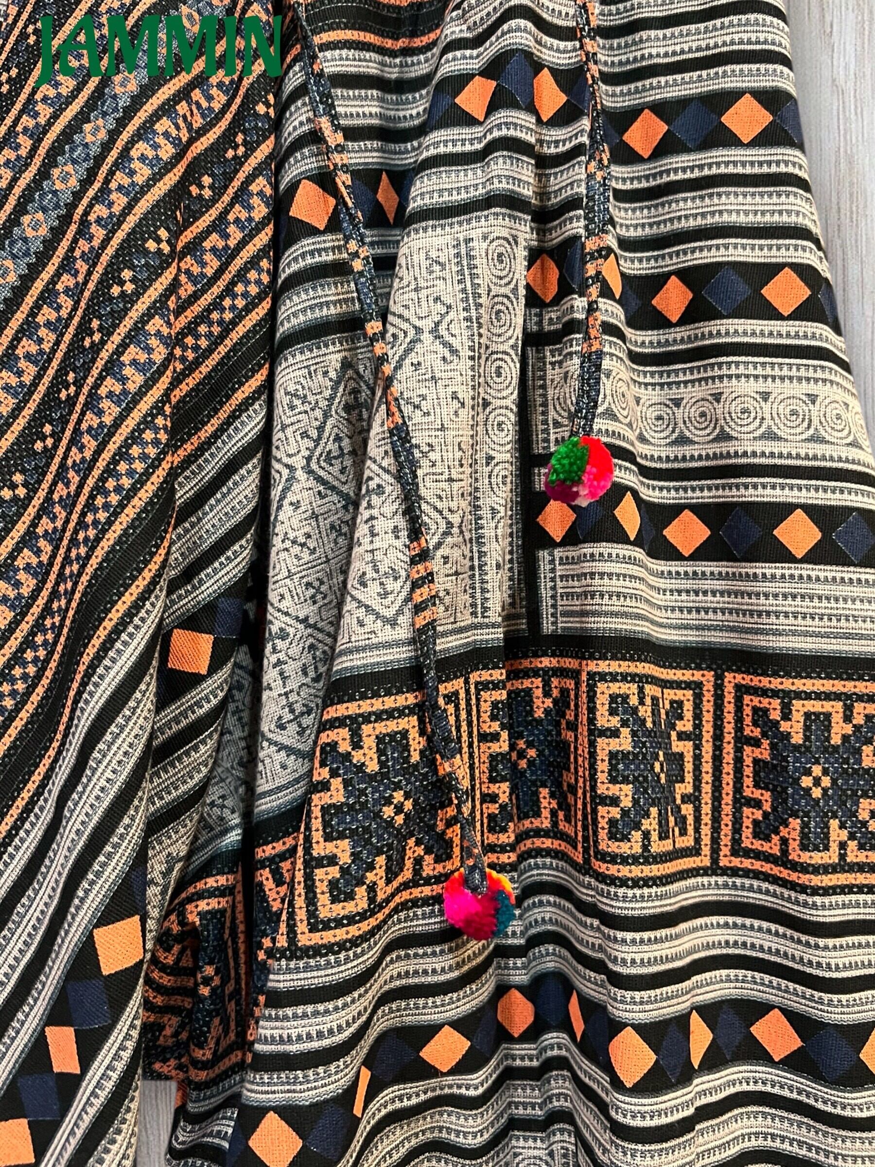 右前にココナッツボタン付きのポケット付きで、両脇にポンポン付きの飾り紐付き。
