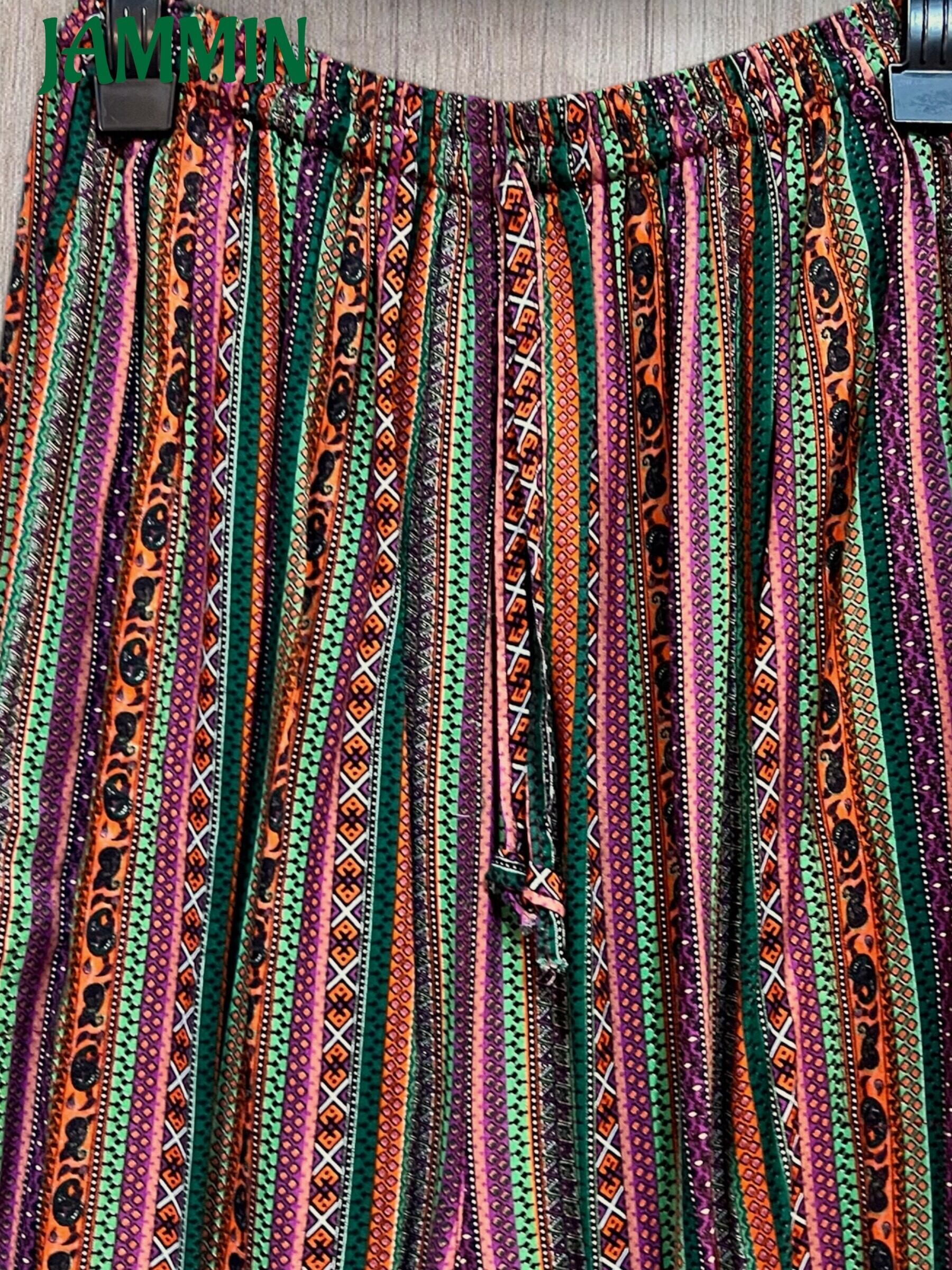 ゆったりサイズのアジアンストライプ柄アラジンパンツです。