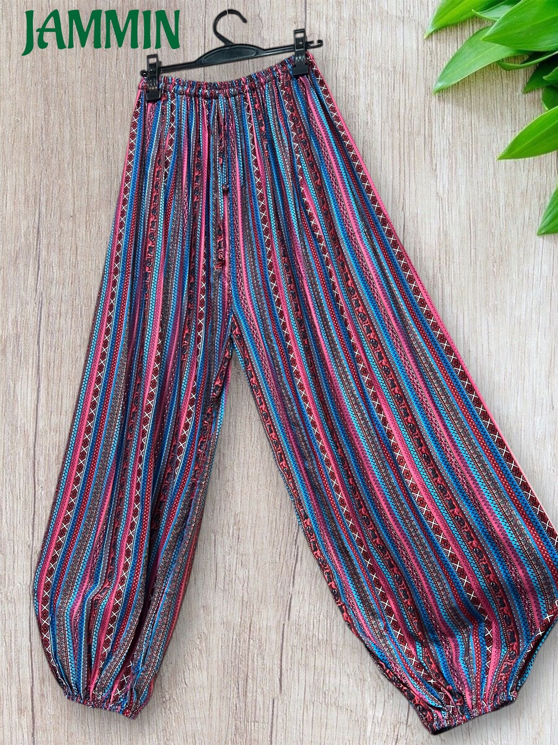 ゆったりサイズのアジアンストライプ柄アラジンパンツです。