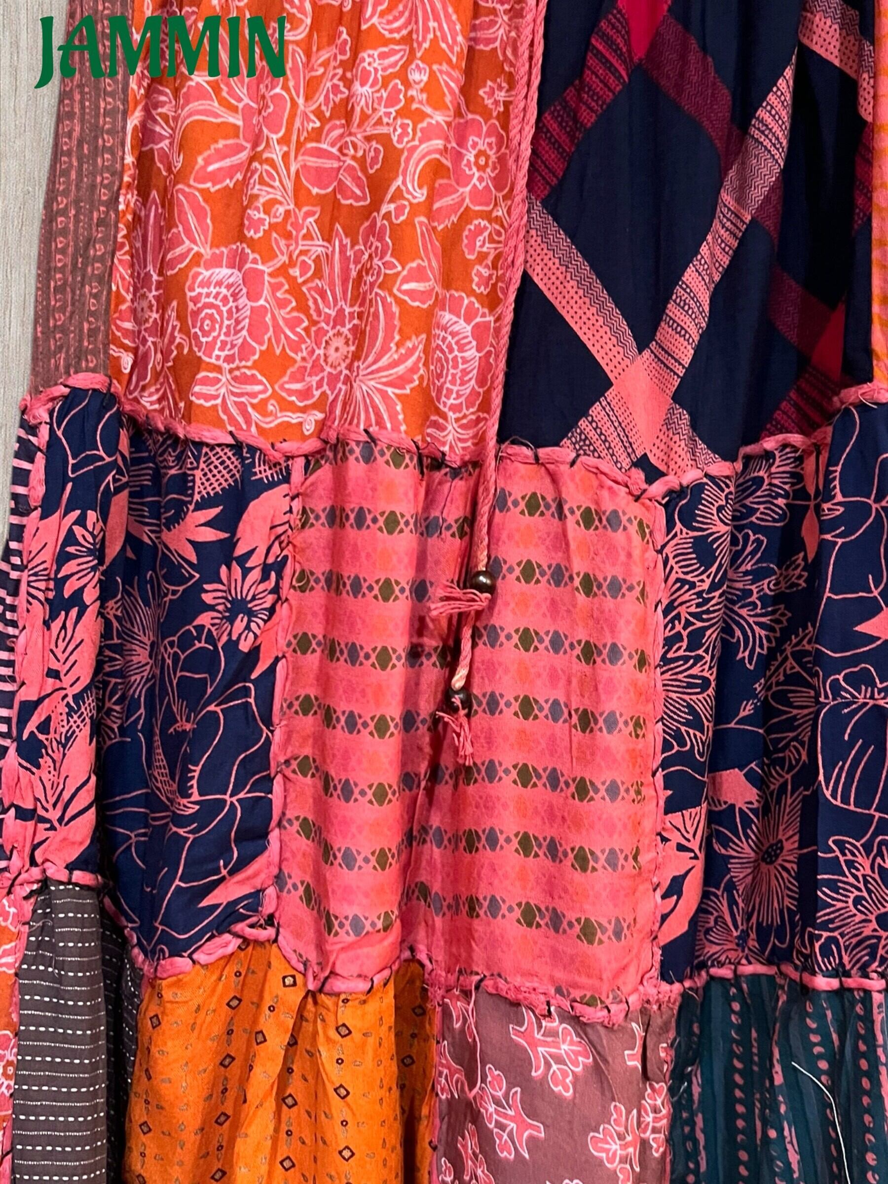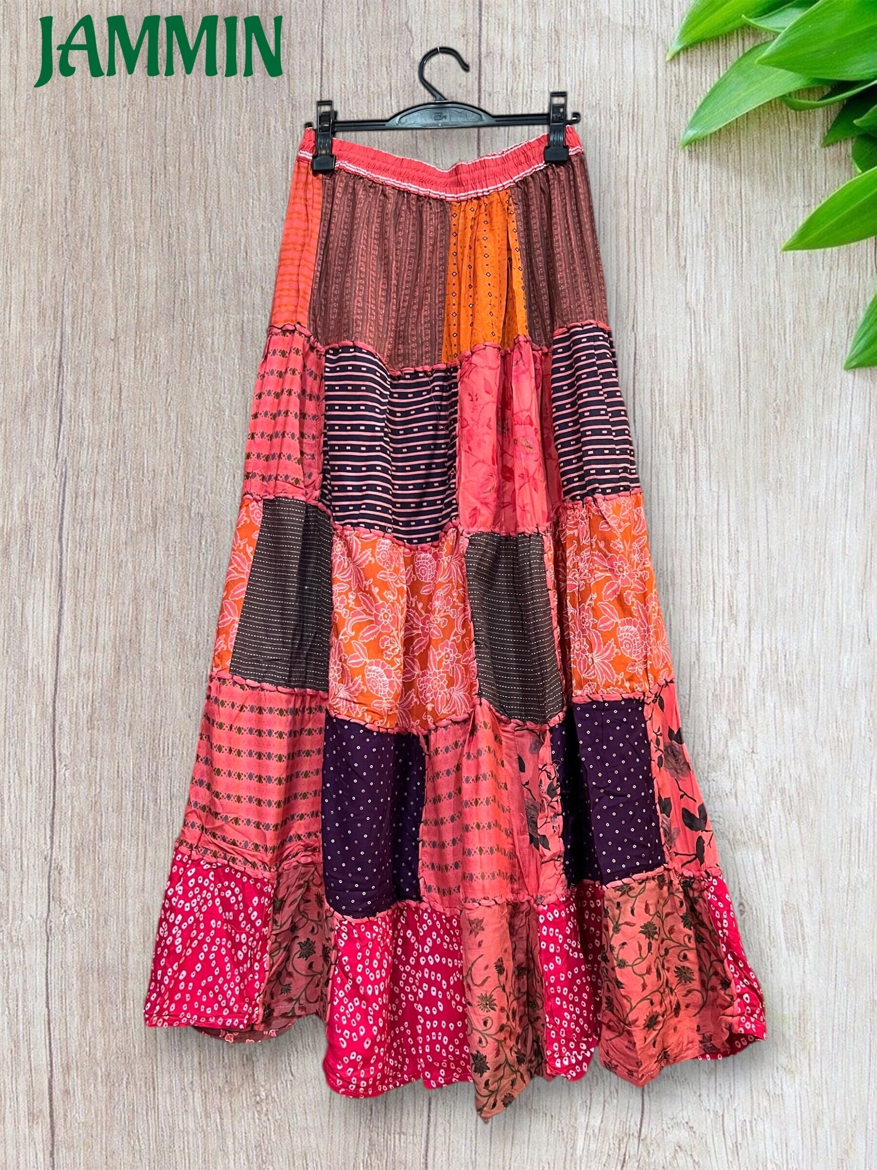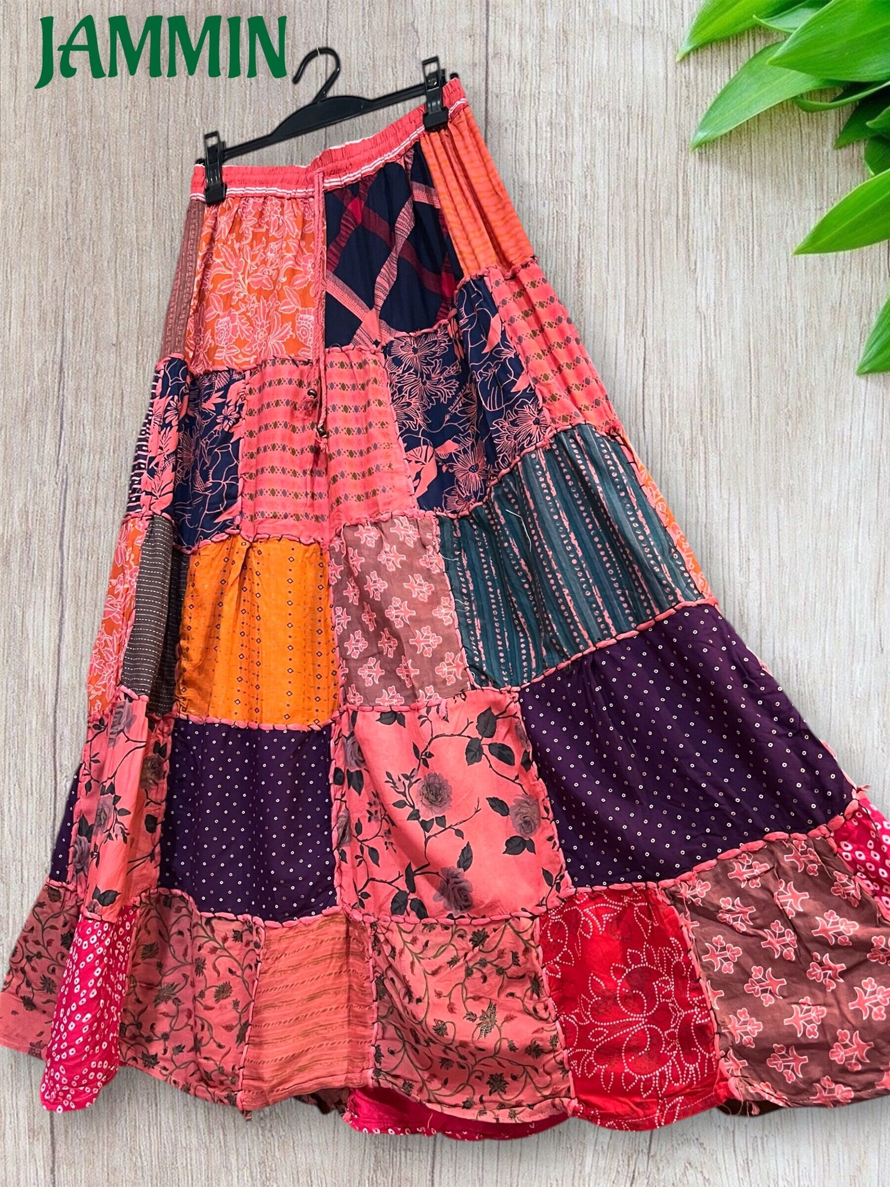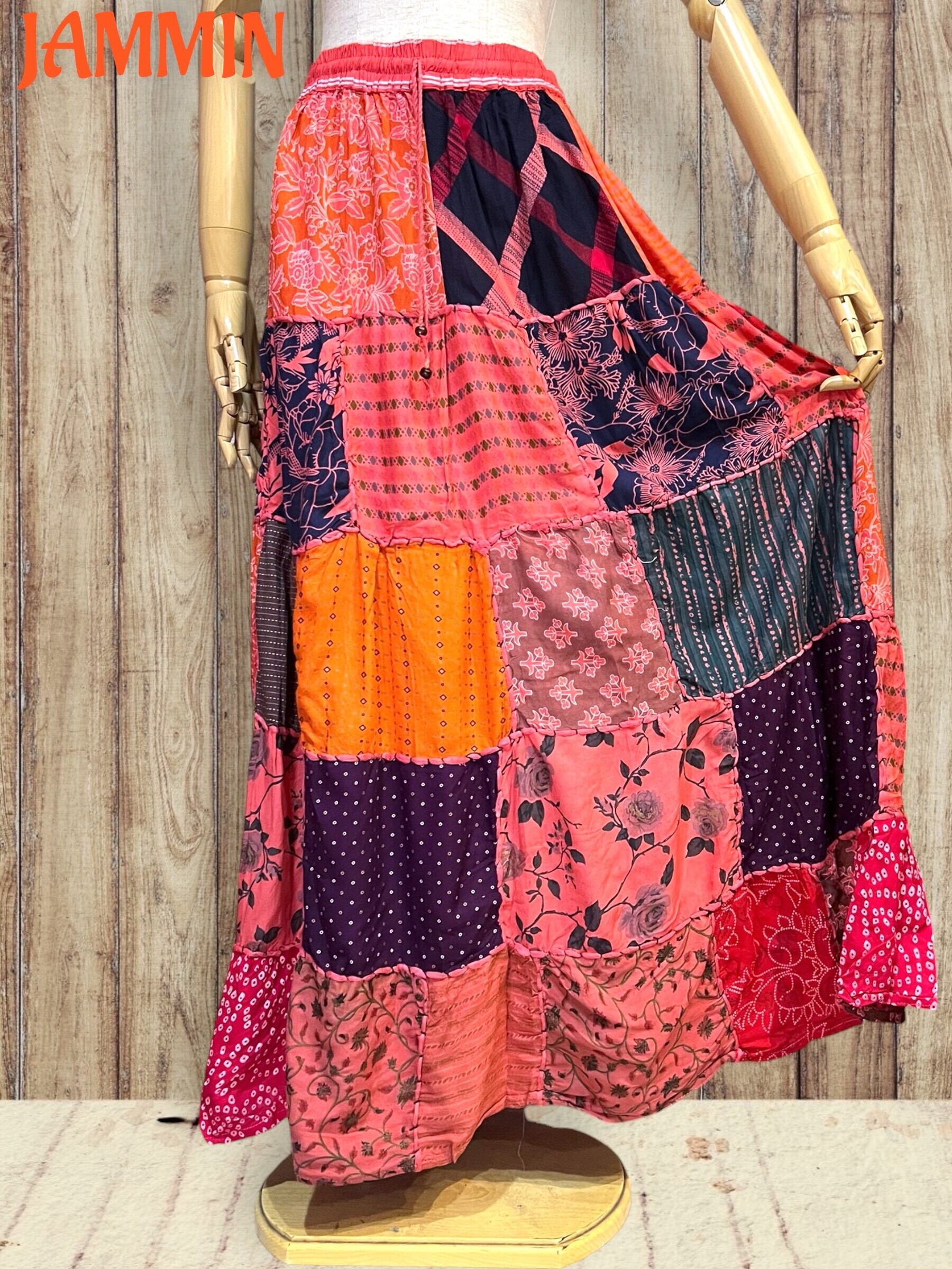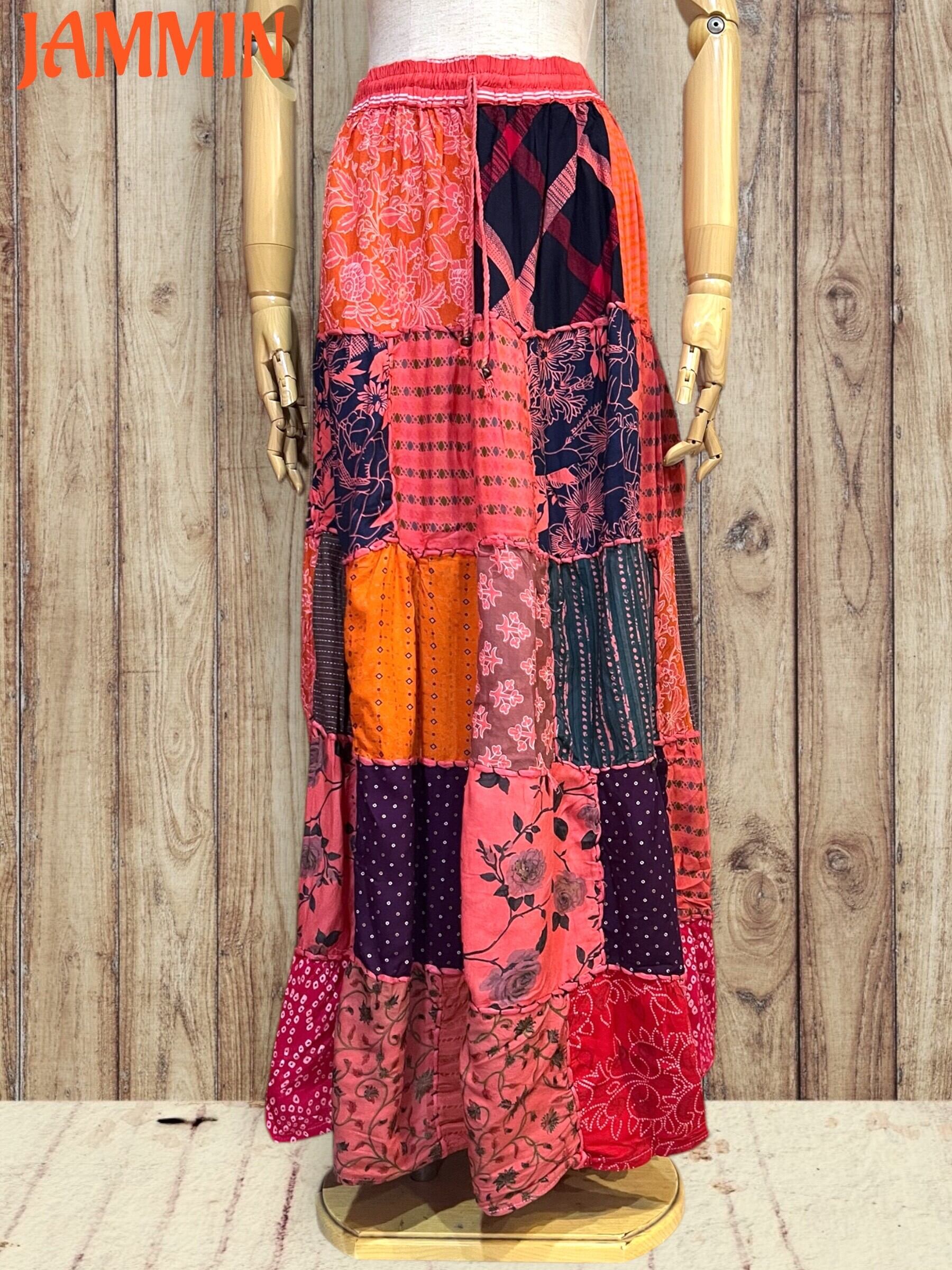 ロングスカート/フレアスカート/アジアンスカート/スカート/マキシ丈スカート/アジアン/エスニック/ヒッピー/サイケ/衣装/ゆったり/柄スカート/リゾート/フリーサイズ/大きいサイズ/パッチワークスカート