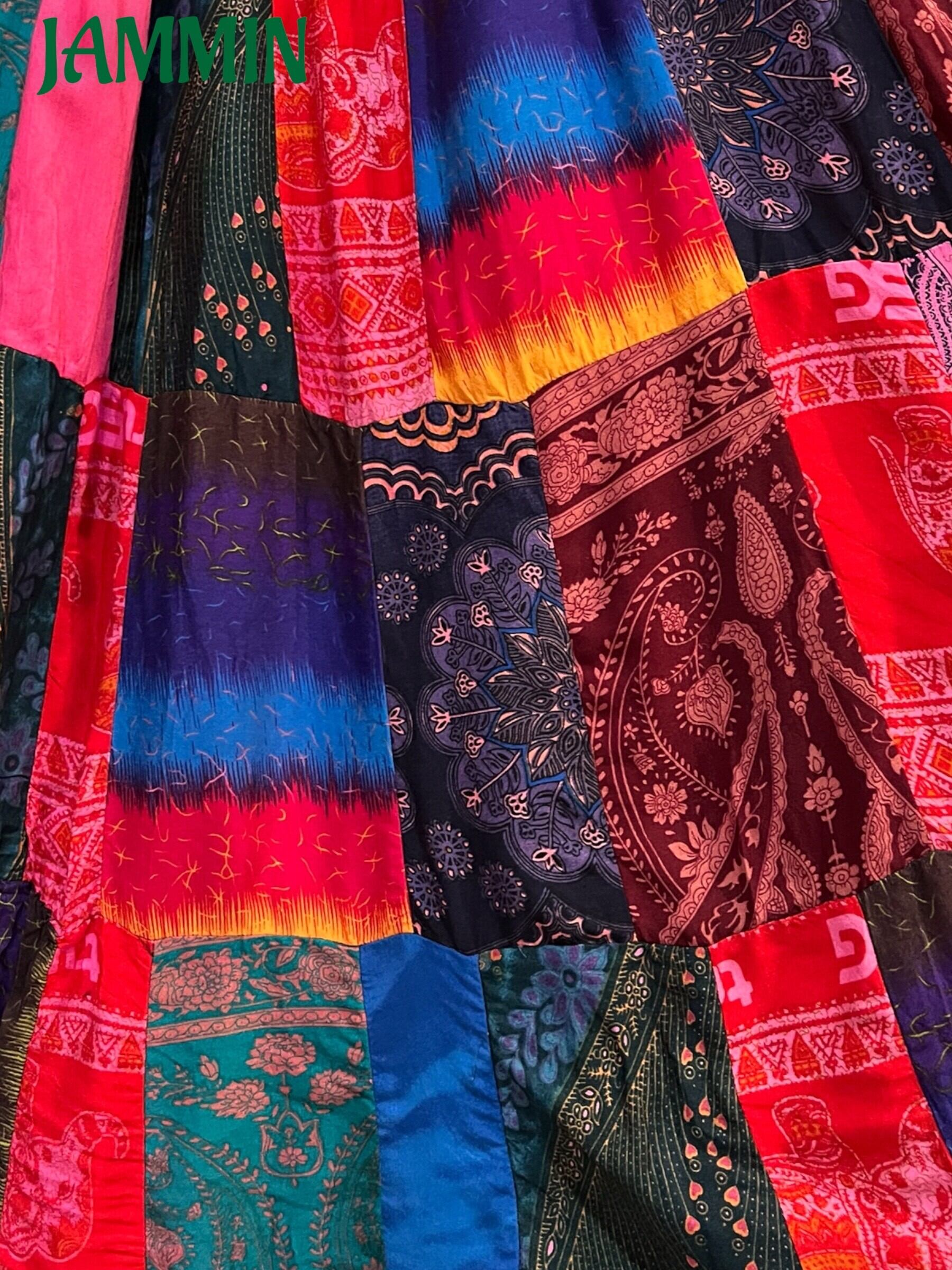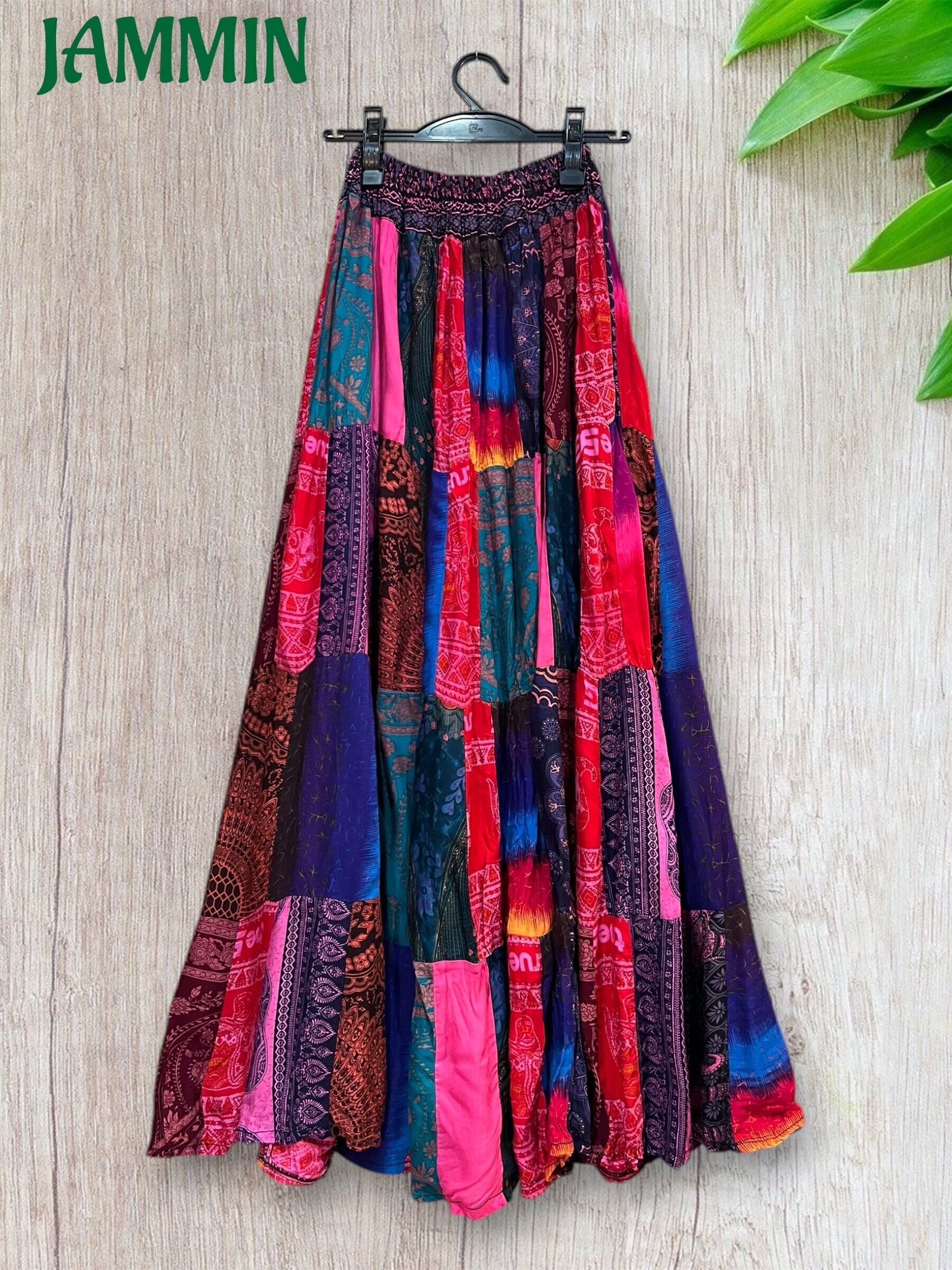 ロングスカート/フレアスカート/アジアンスカート/スカート/マキシ丈スカート/アジアン/エスニック/ヒッピー/サイケ/衣装/ゆったり/柄スカート/リゾート/フリーサイズ/大きいサイズ/パッチワークスカート