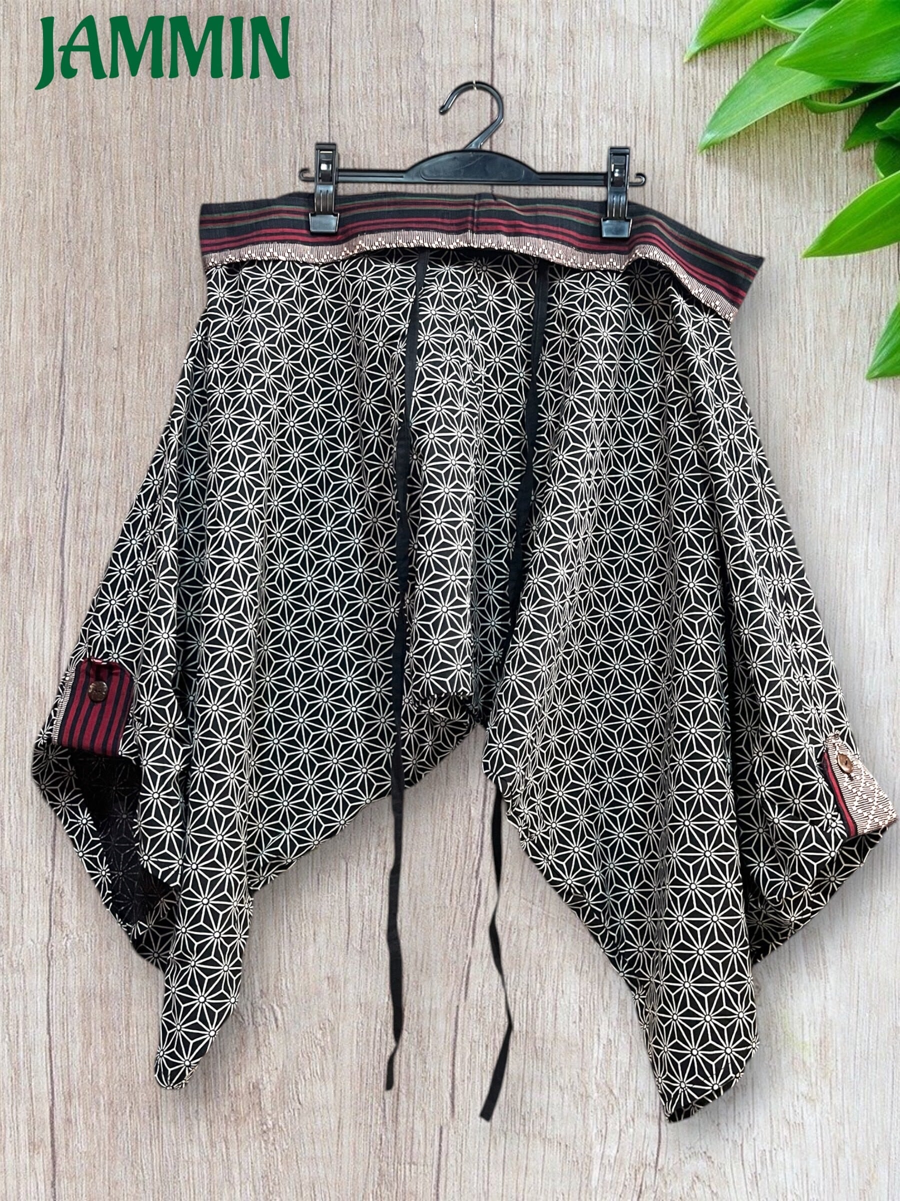 黒色ベースの和柄袴パンツです。