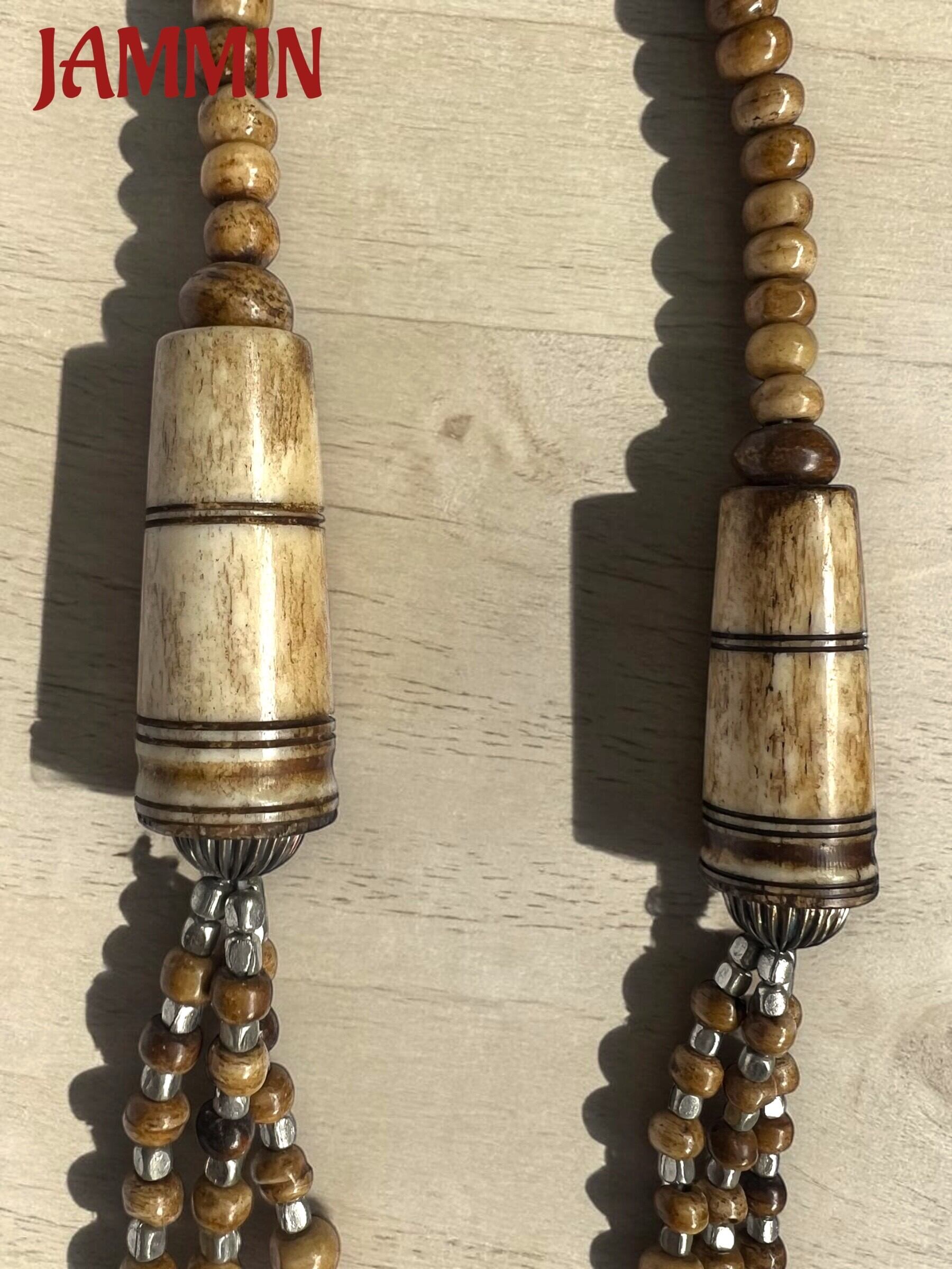 コインパーツやボーンビーズ、真鍮ビーズを使った個性的なネックレスです。
