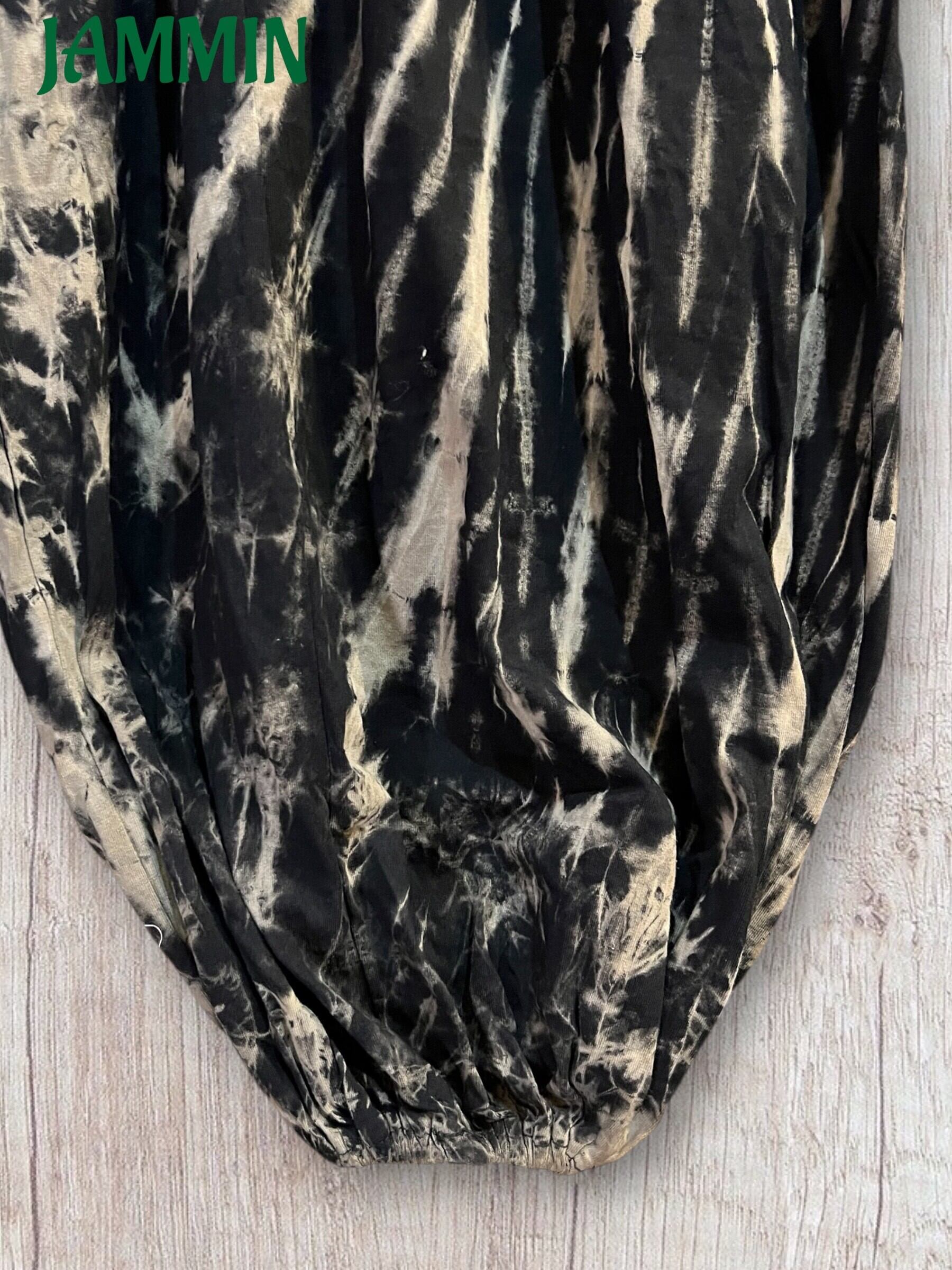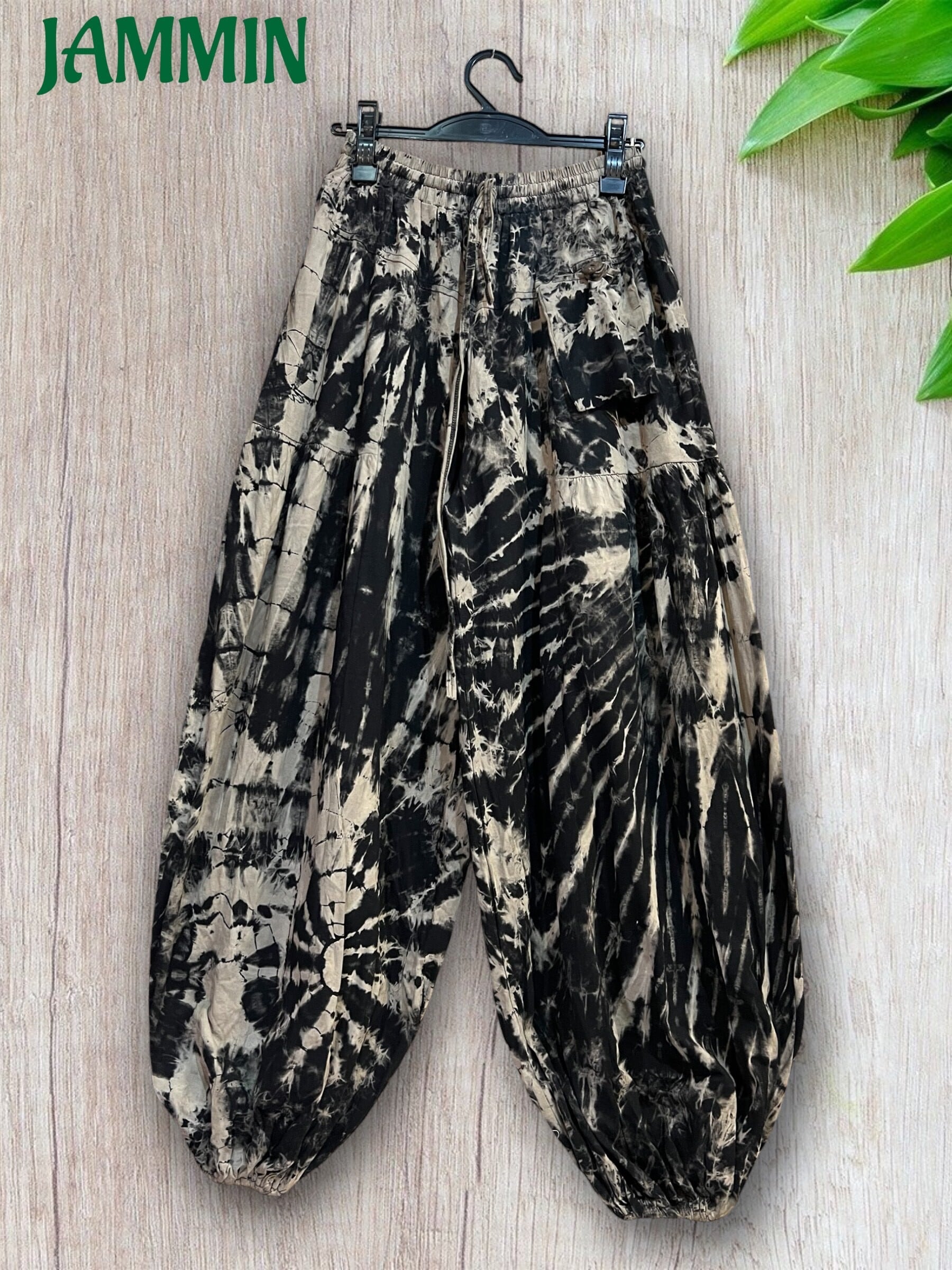 たっぷりした布使いで、裾がゴムで絞ってあるタイダイアラジンパンツです。
