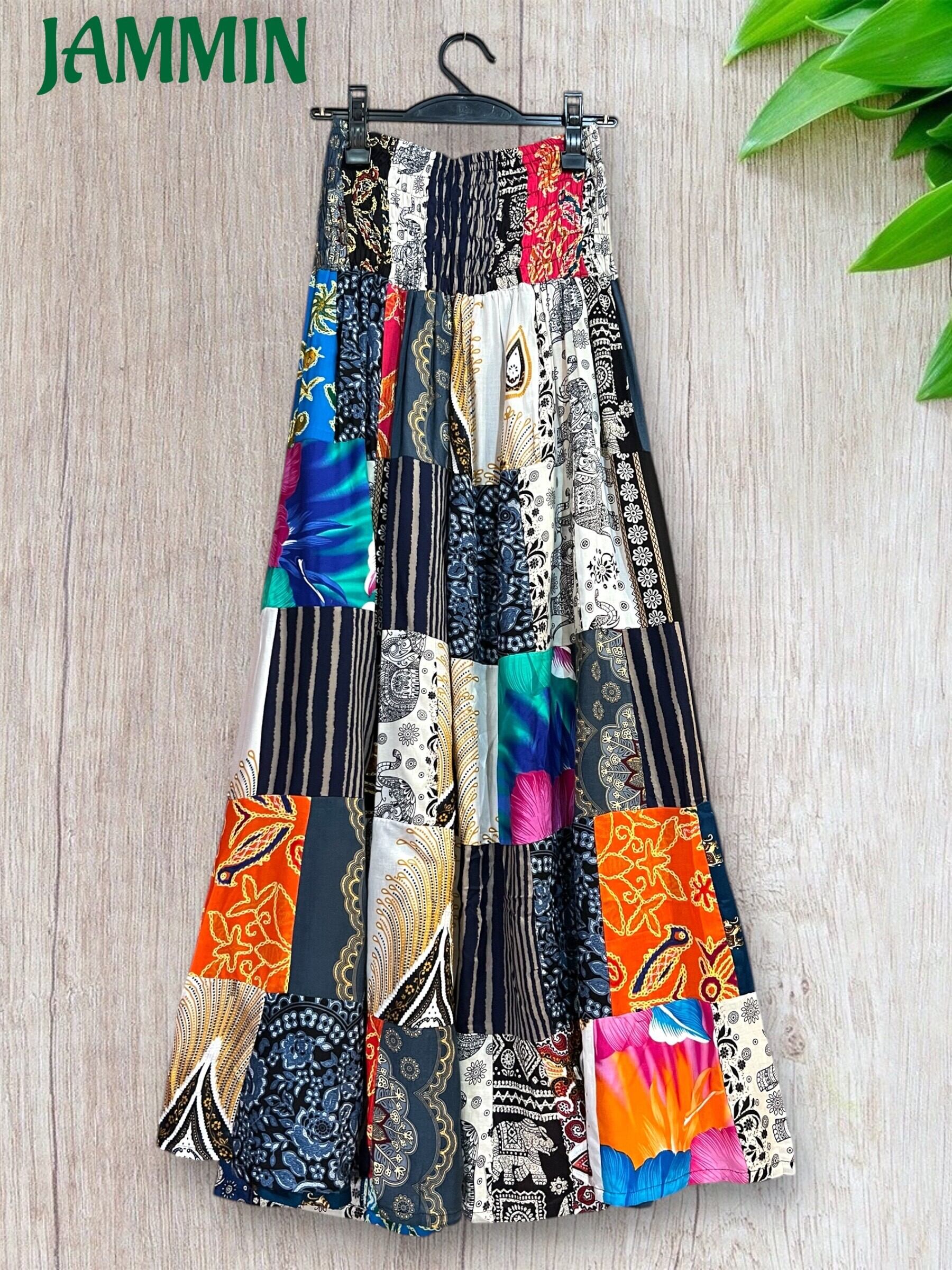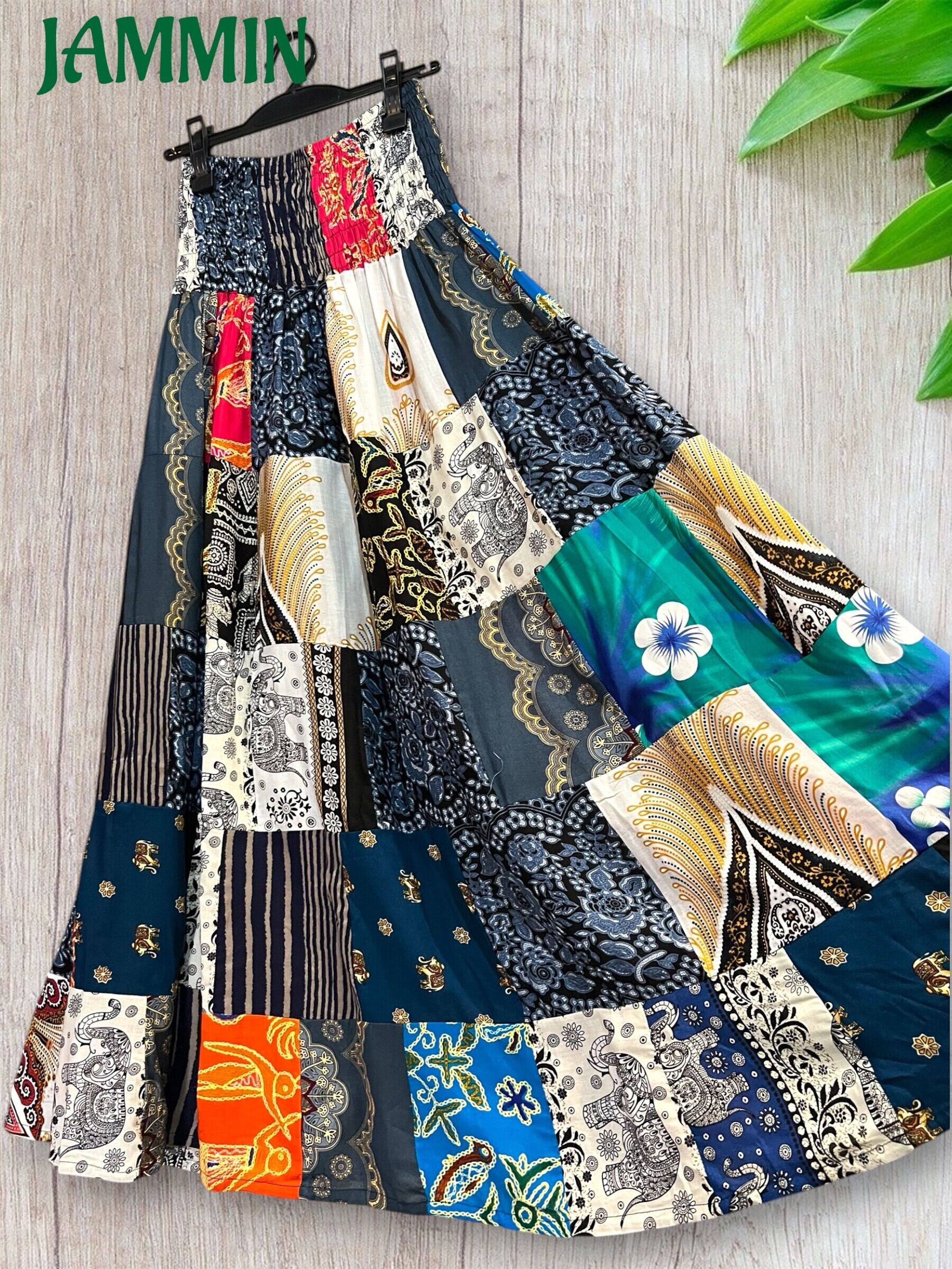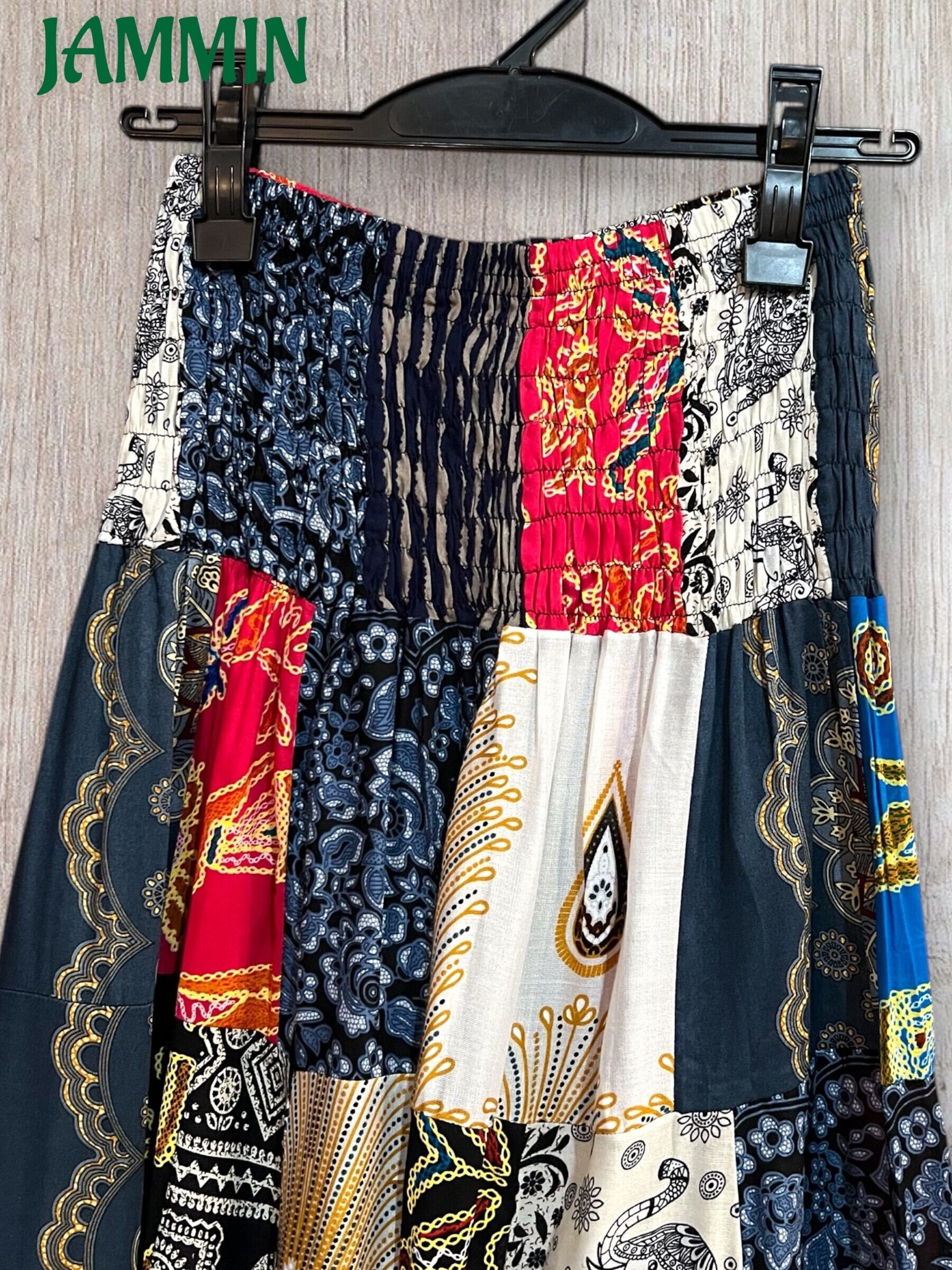 ロングスカート/フレアスカート/アジアンスカート/スカート/マキシ丈スカート/アジアン/エスニック/ヒッピー/サイケ/衣装/ゆったり/柄スカート/リゾート/フリーサイズ/大きいサイズ/パッチワークスカート