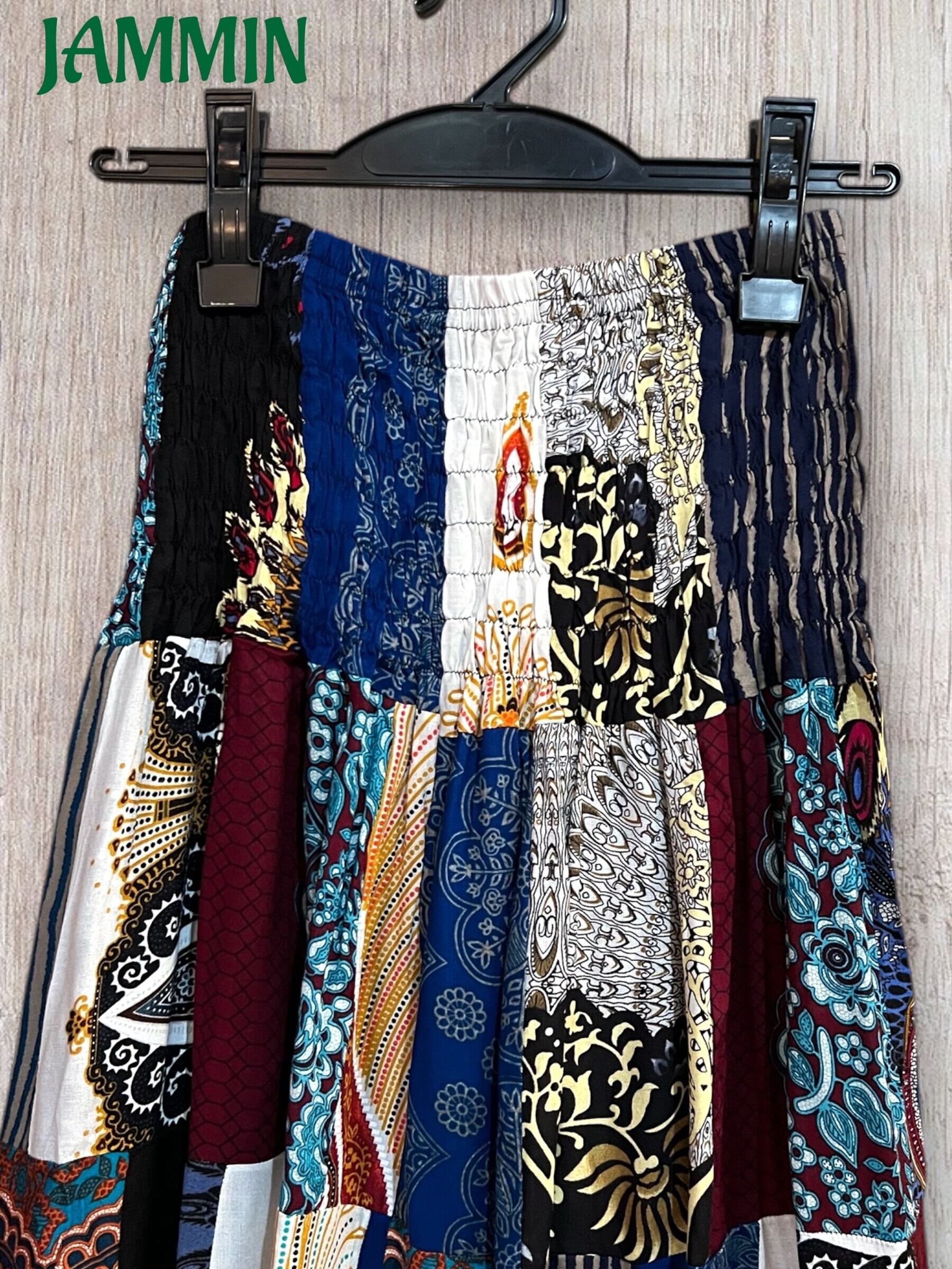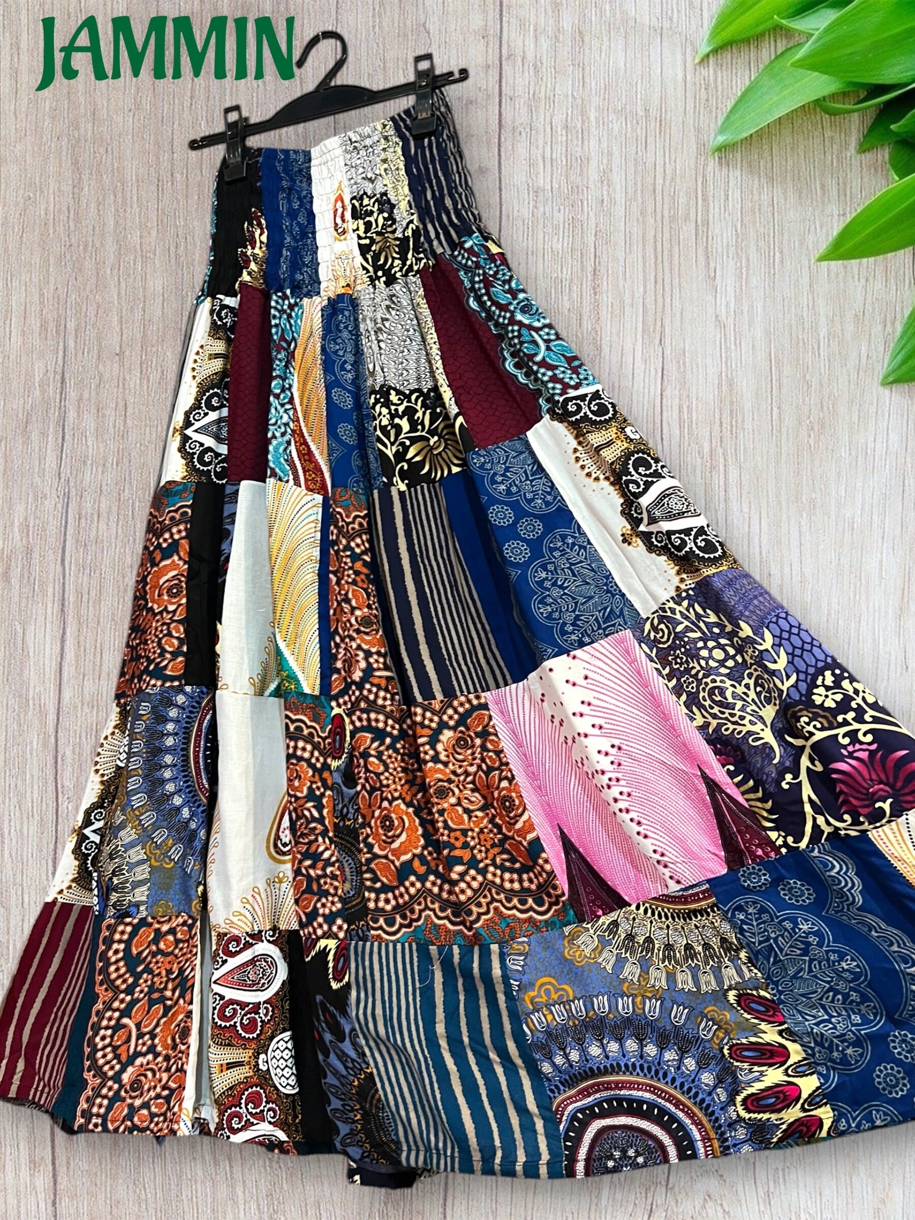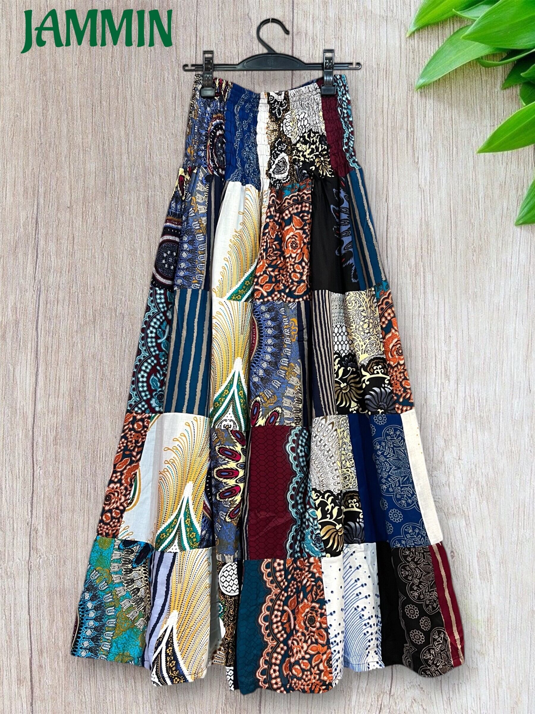 ロングスカート/フレアスカート/アジアンスカート/スカート/マキシ丈スカート/アジアン/エスニック/ヒッピー/サイケ/衣装/ゆったり/柄スカート/リゾート/フリーサイズ/大きいサイズ/パッチワークスカート