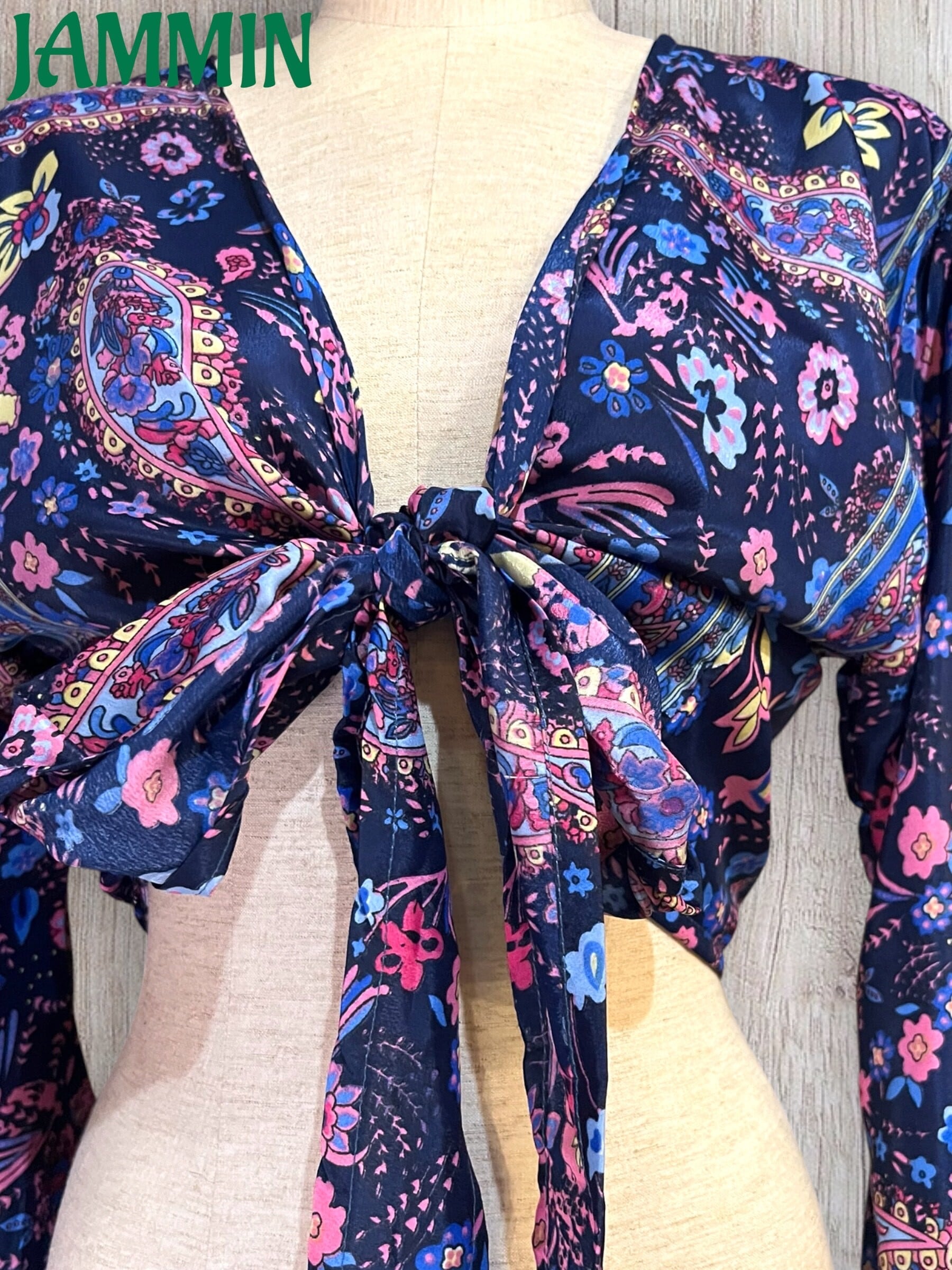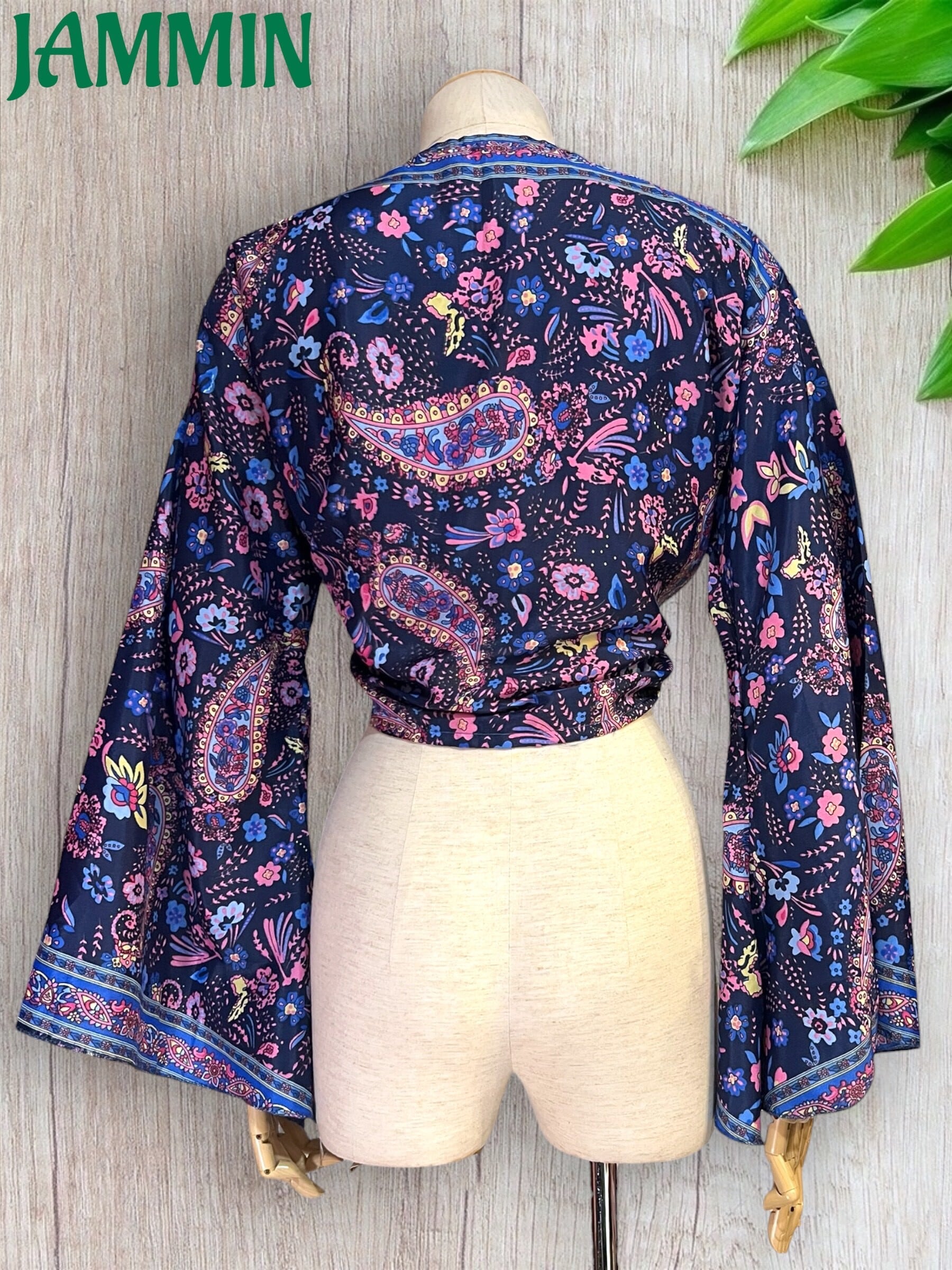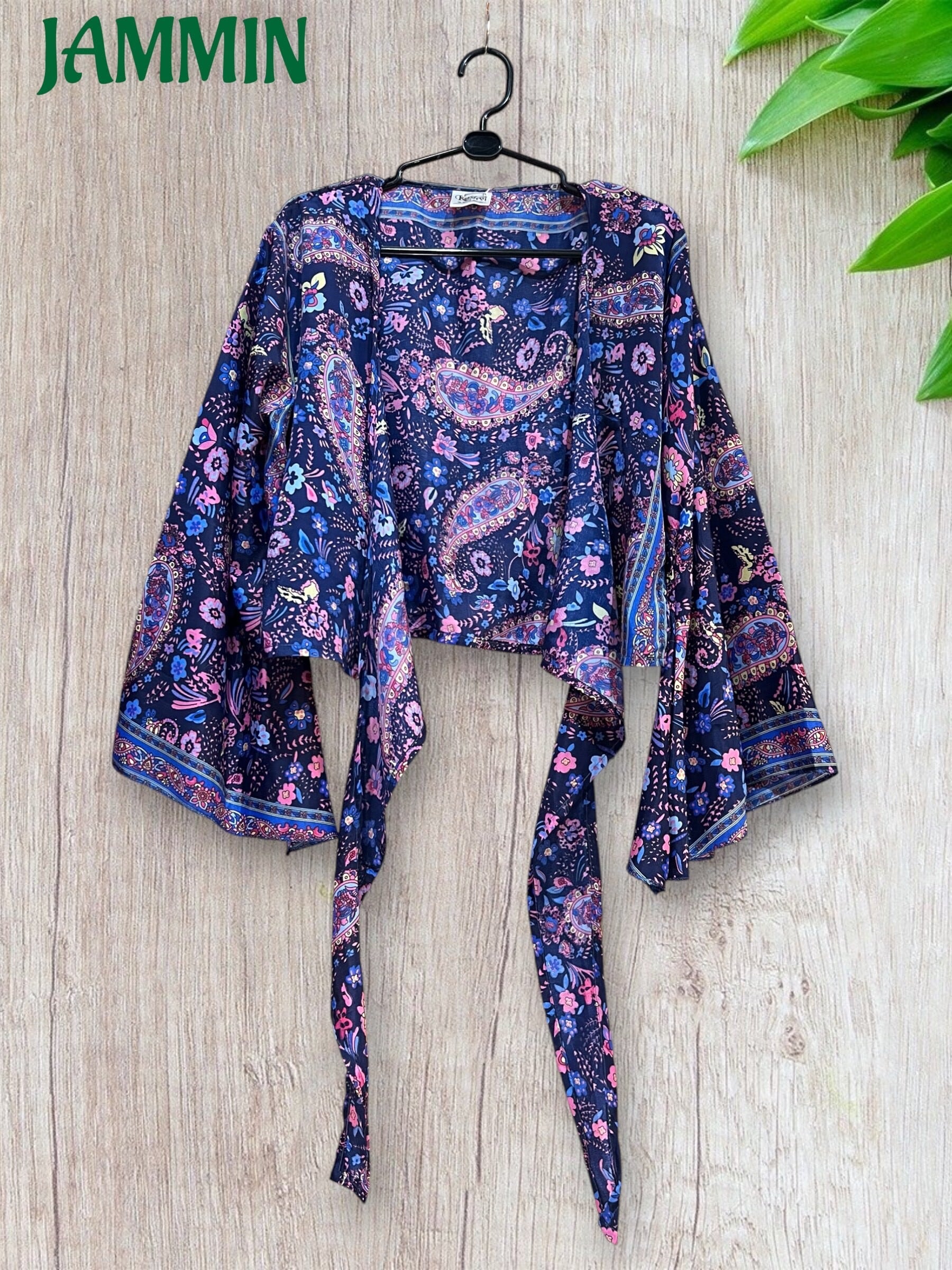 広めのフレア袖で、シルエットの可愛いペーズリー花柄ボレロです。