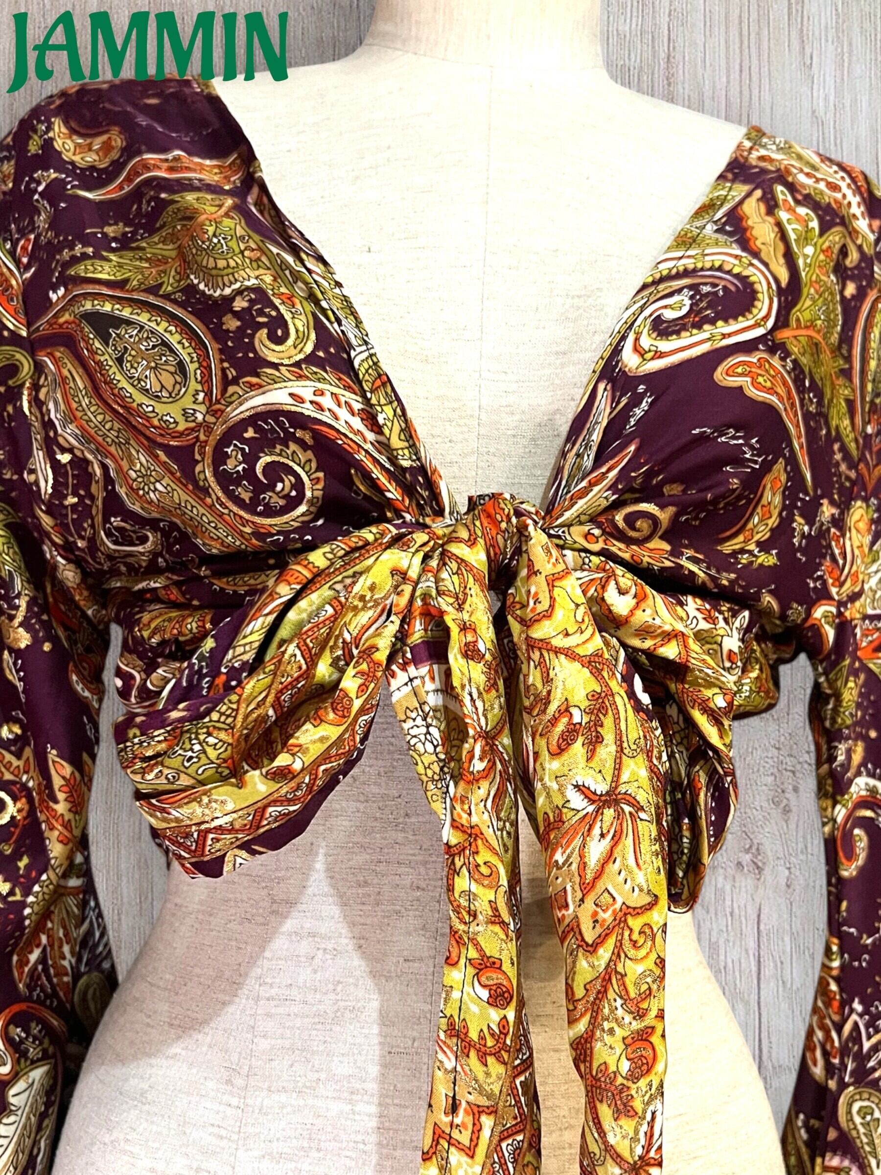 広めのフレア袖で、シルエットの可愛いペーズリー柄ボレロです。