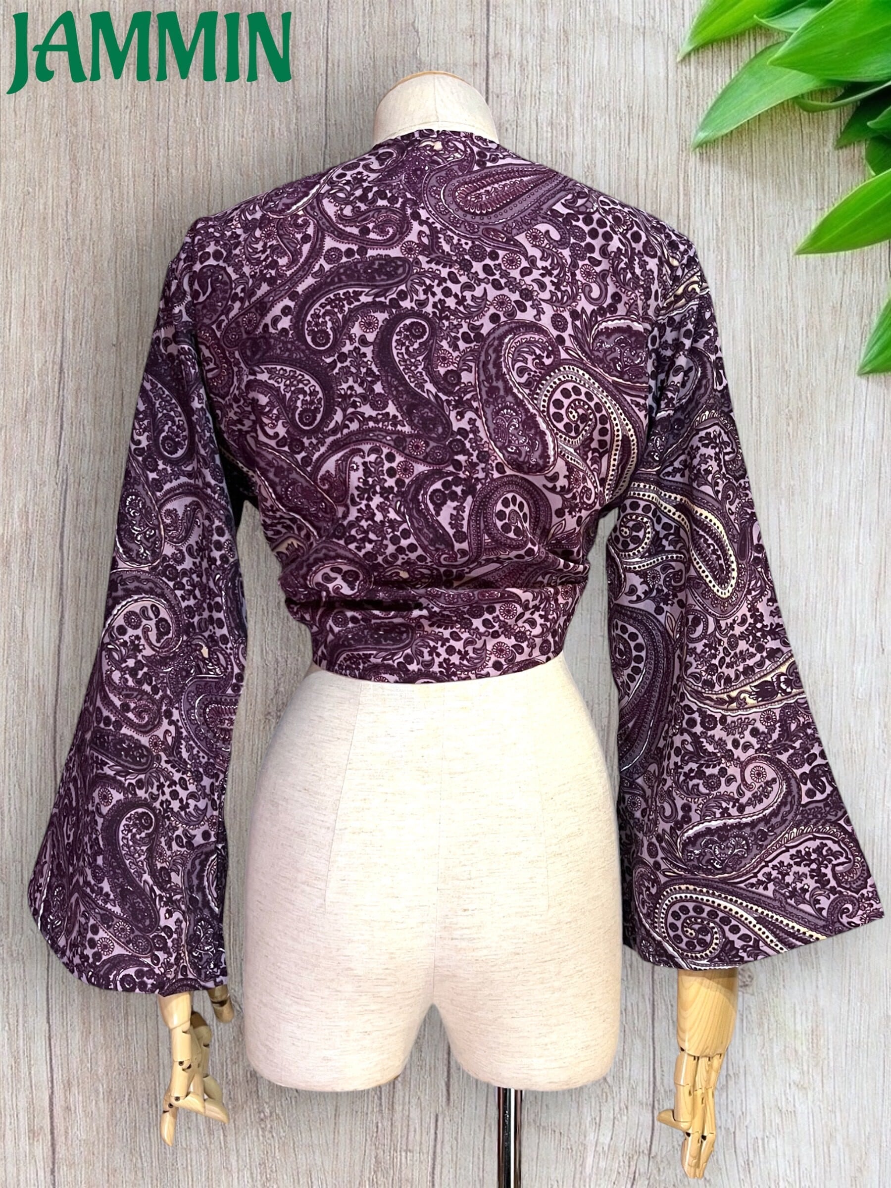 広めのフレア袖で、シルエットの可愛いペーズリー柄ボレロです。