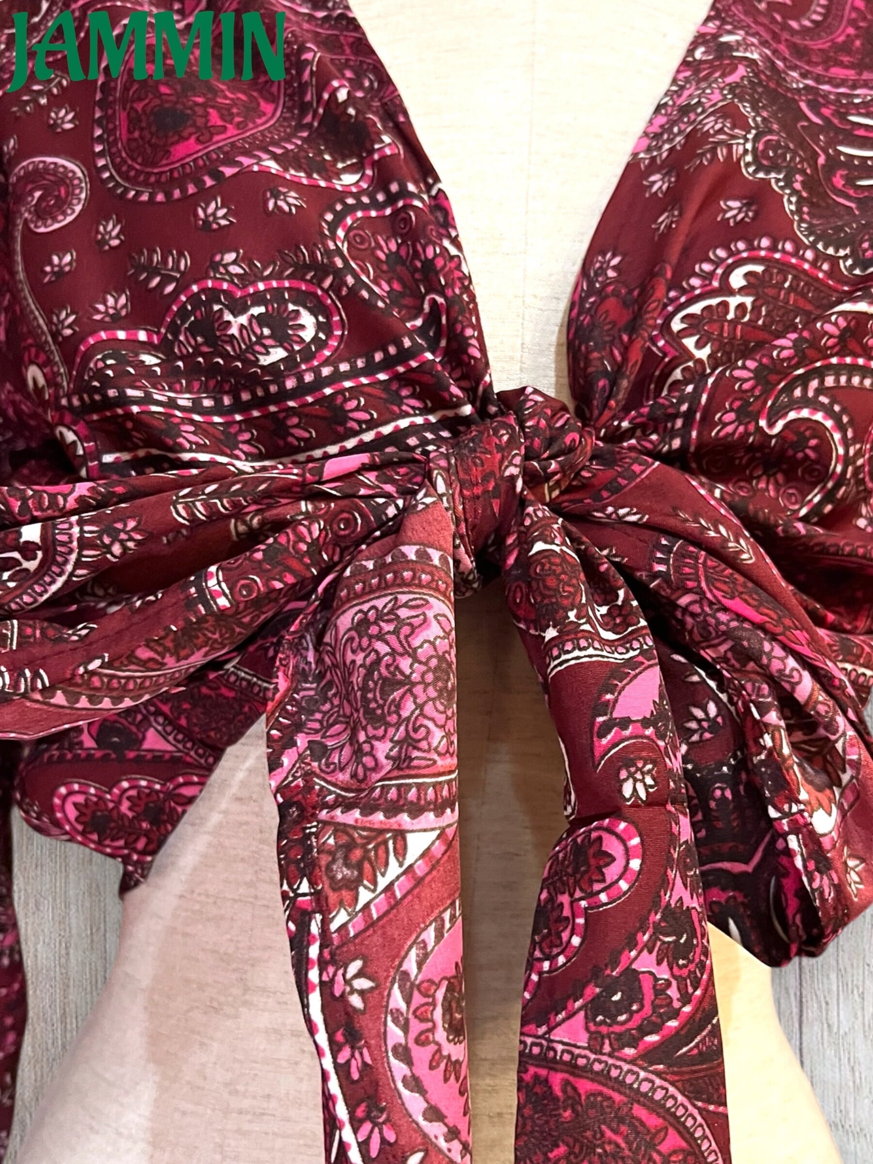 広めのフレア袖で、シルエットの可愛いペーズリー柄ボレロです。