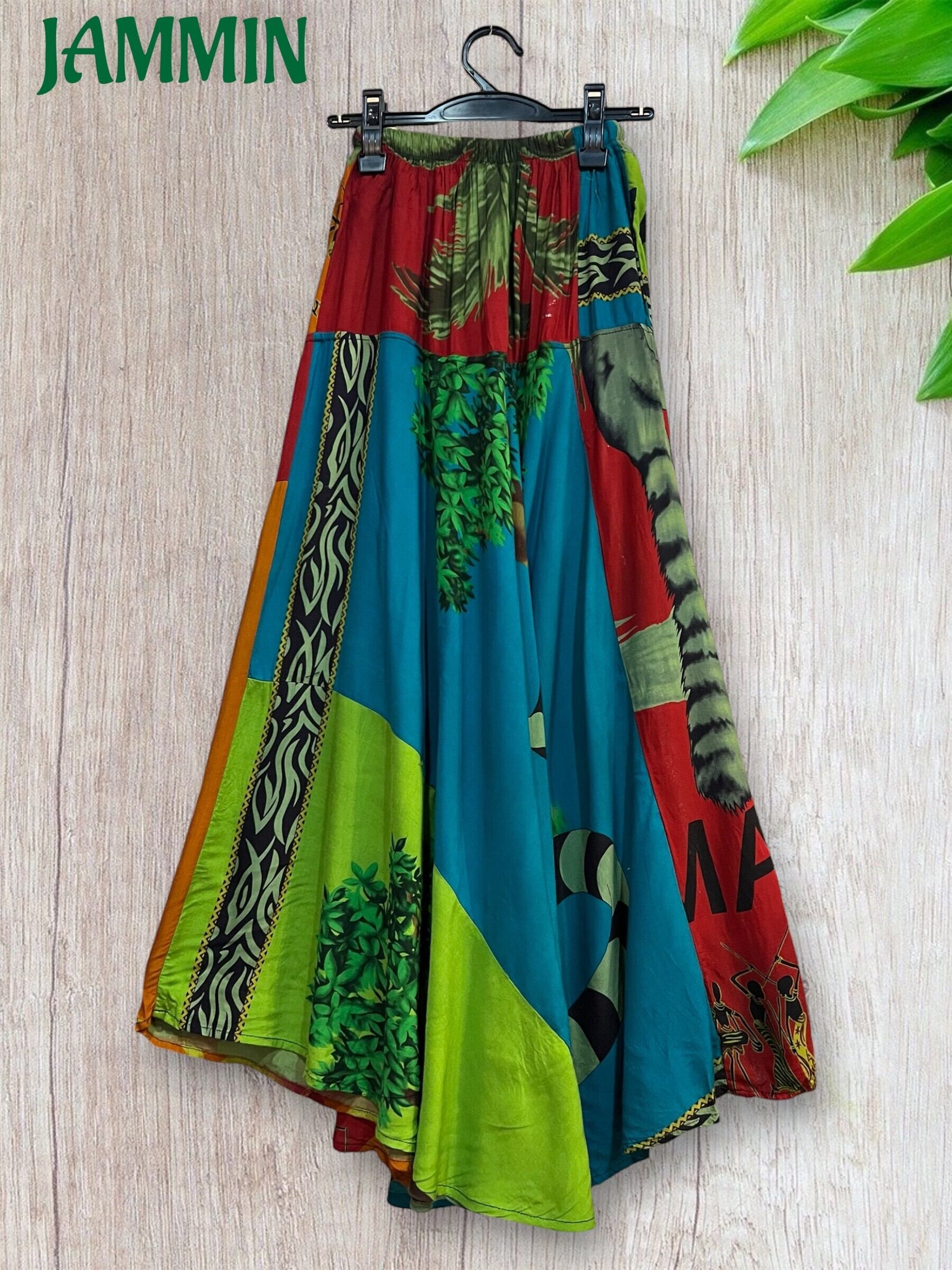 ロングスカート/フレアスカート/アジアンスカート/スカート/マキシ丈スカート/アジアン/エスニック/ヒッピー/サイケ/衣装/ゆったり/柄スカート/リゾート/フリーサイズ/大きいサイズ/パッチワークスカート