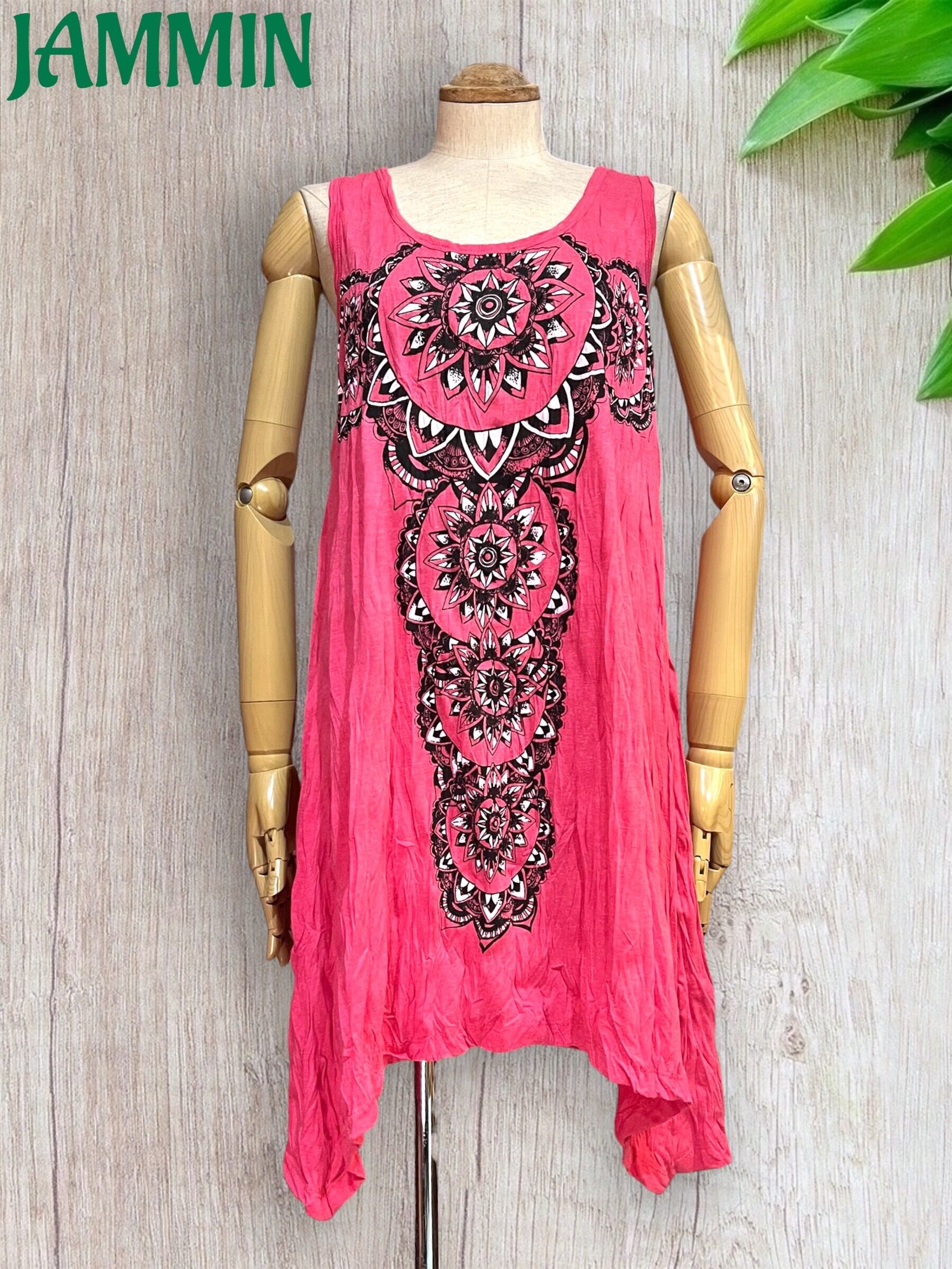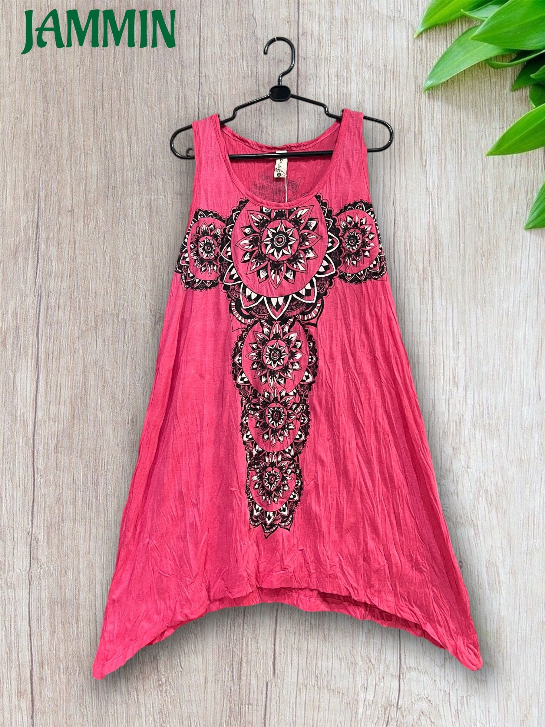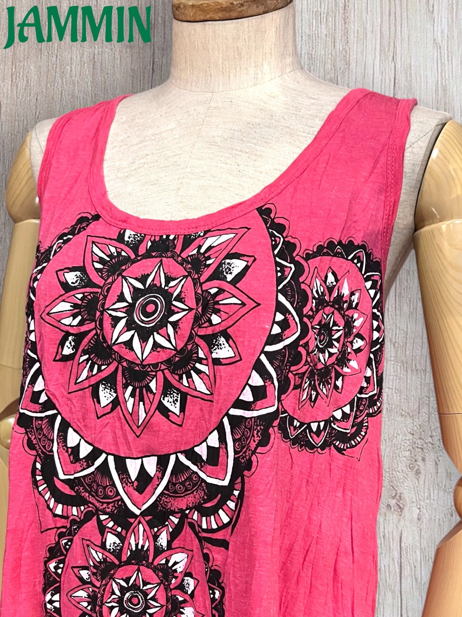 アジアンな紋様柄入りのチュニック丈タンクトップです。