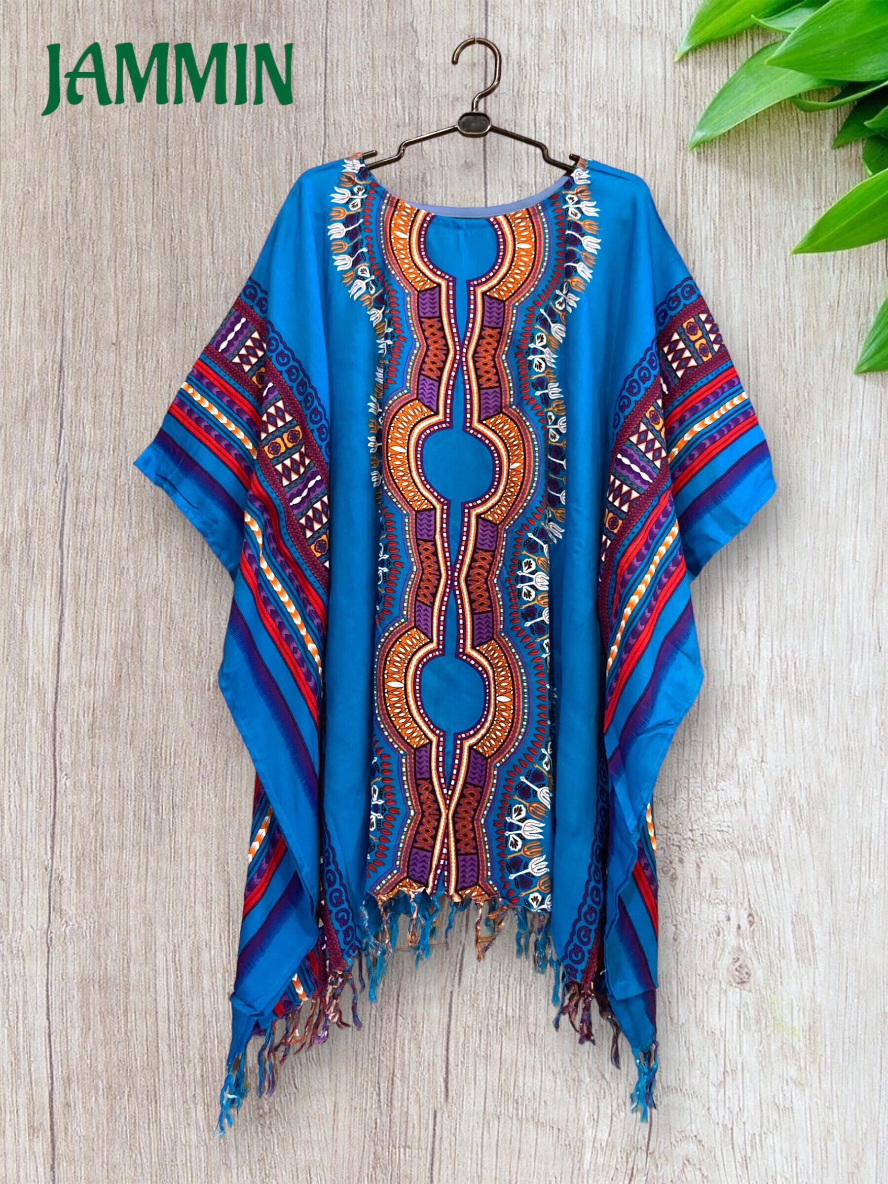 アフリカ民族衣装ダシキ柄フリンジポンチョ