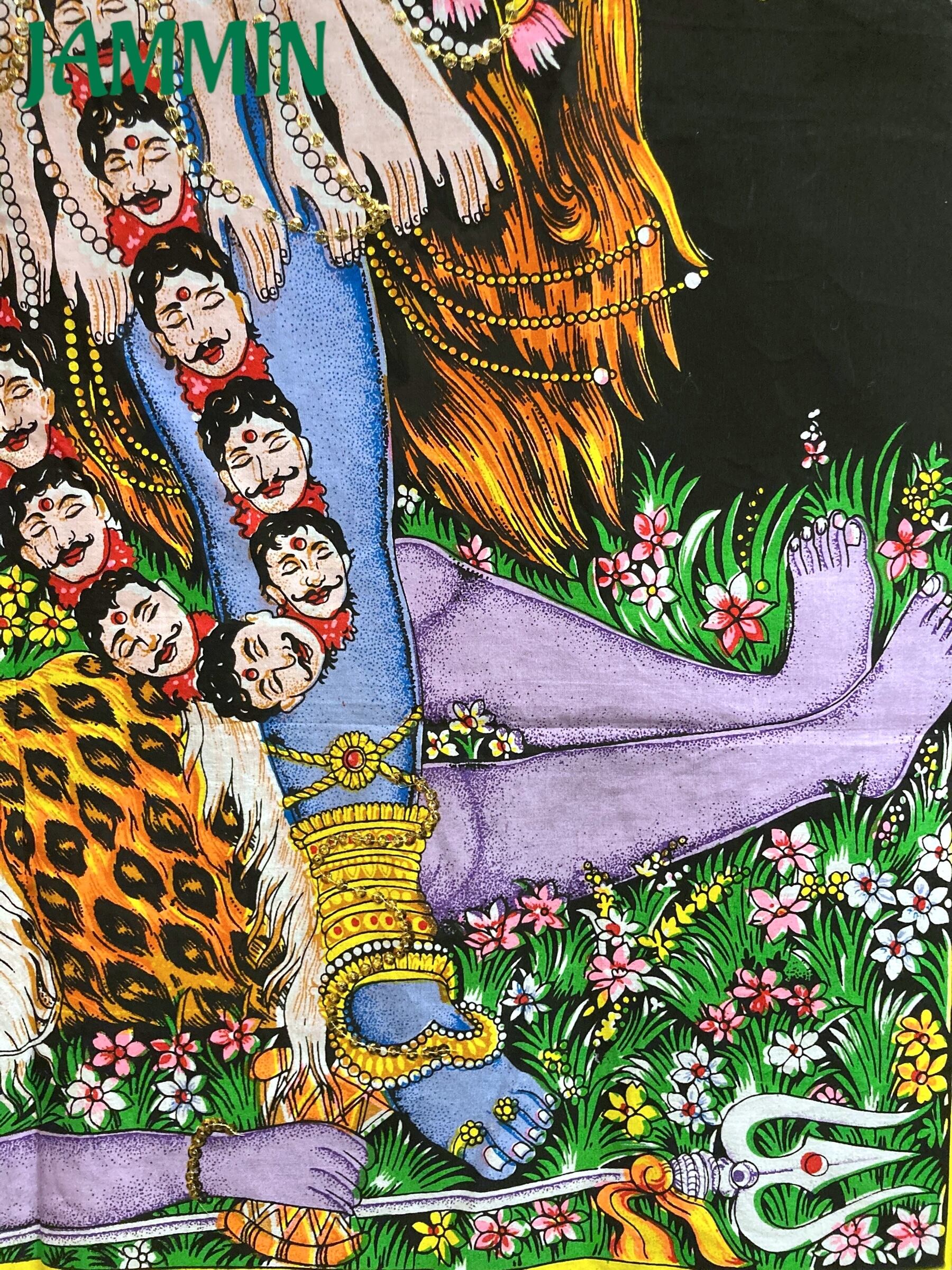 血と殺戮の神様カーリー神のカラフルなタペストリーです。