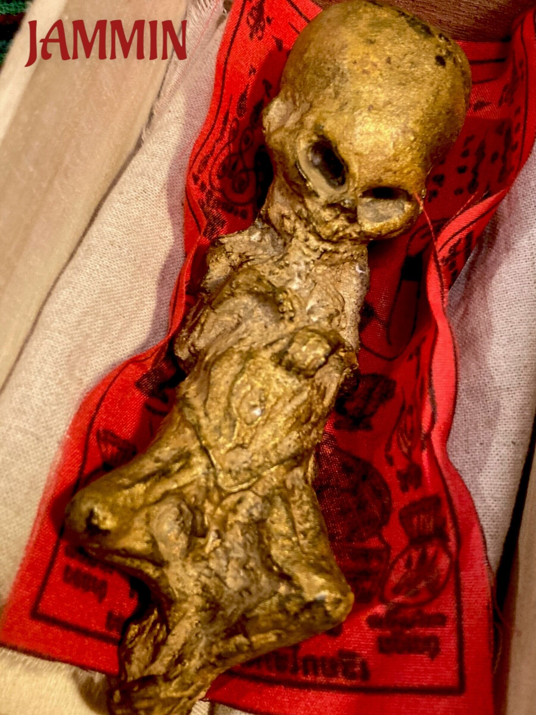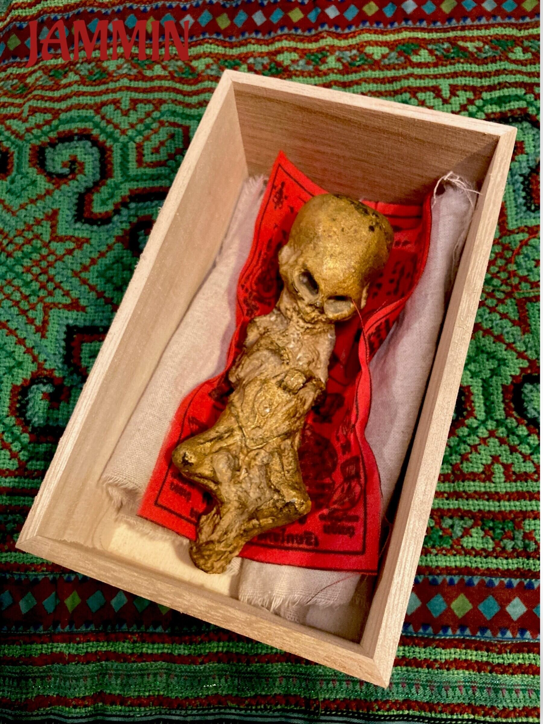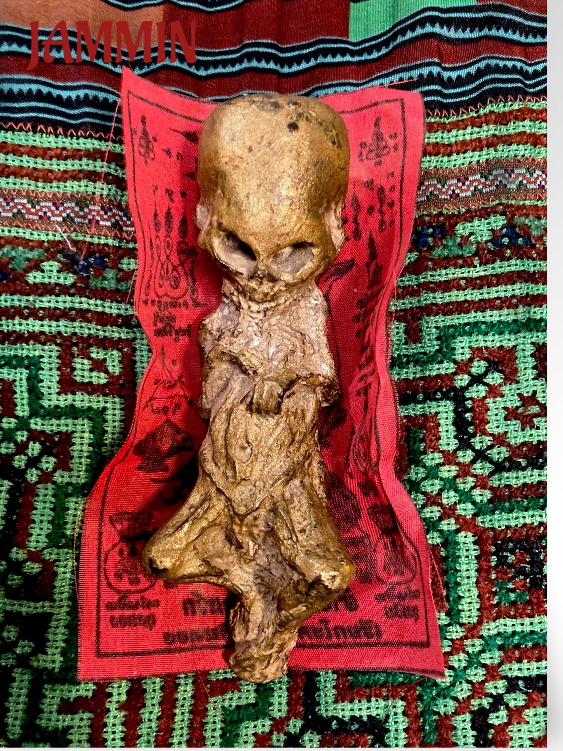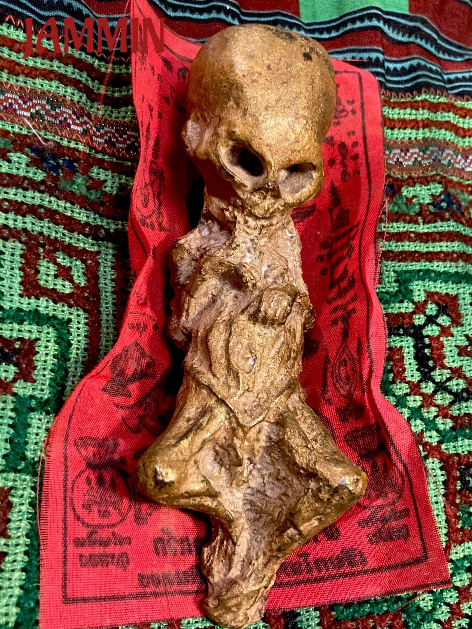 昔は生を受ける事のできなかった胎児から作られていた呪術的な物ですが、現在はその様な素材は使われておらず、色々な縁起の良い土や粉から作られていると直接教えてもらいました。