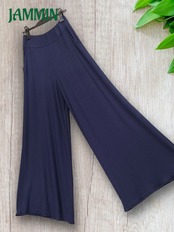 とても良く伸びるスパンデックス混のレーヨン素材で、着心地抜群のストレッチワイドパンツです。