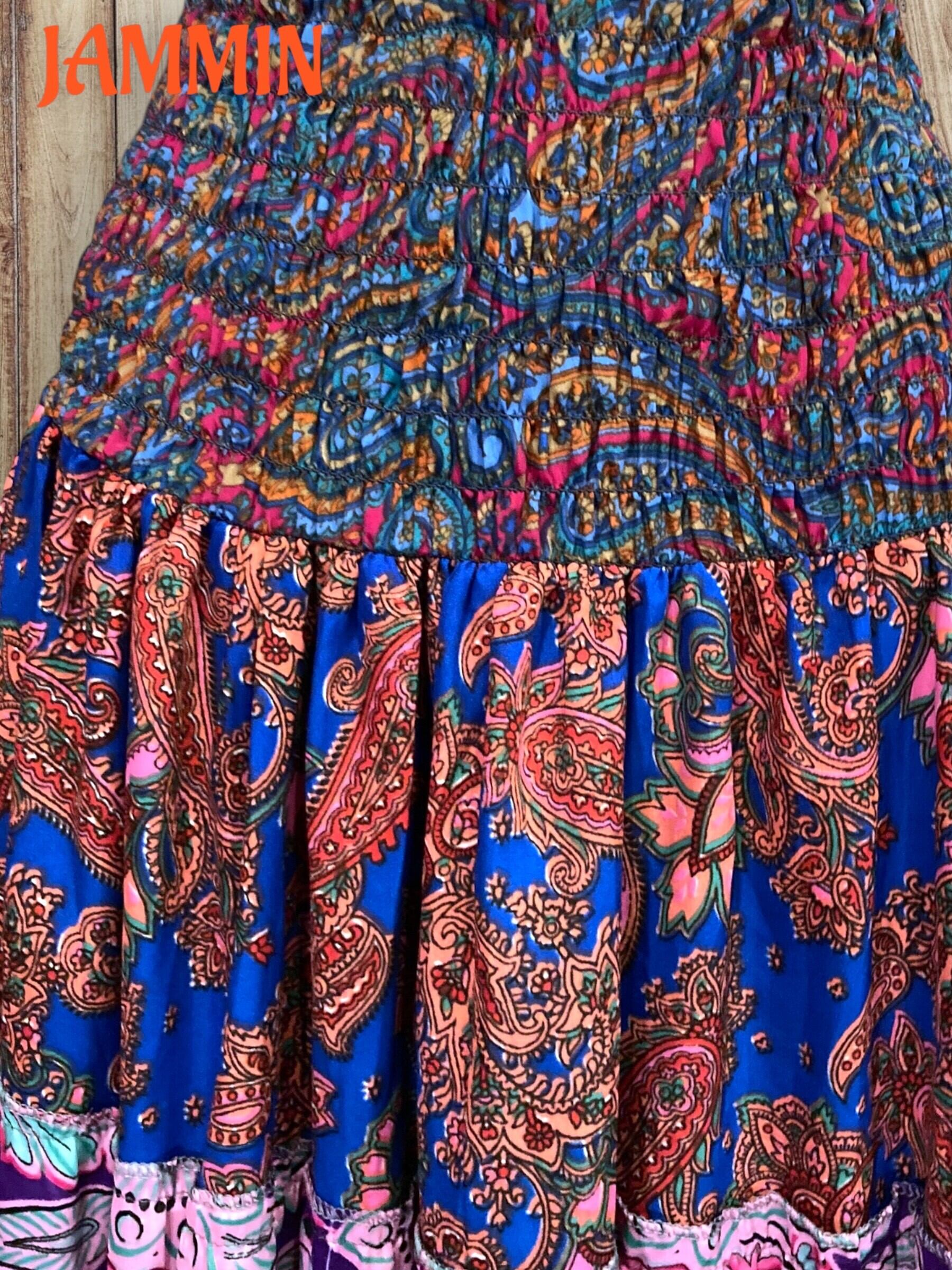アジアン/エスニック/サイケ/ロングスカート/フレアスカート/カラフル/ヒッピー/フェス/衣装/個性派ファッション/サーキュラースカート/ティアードスカート