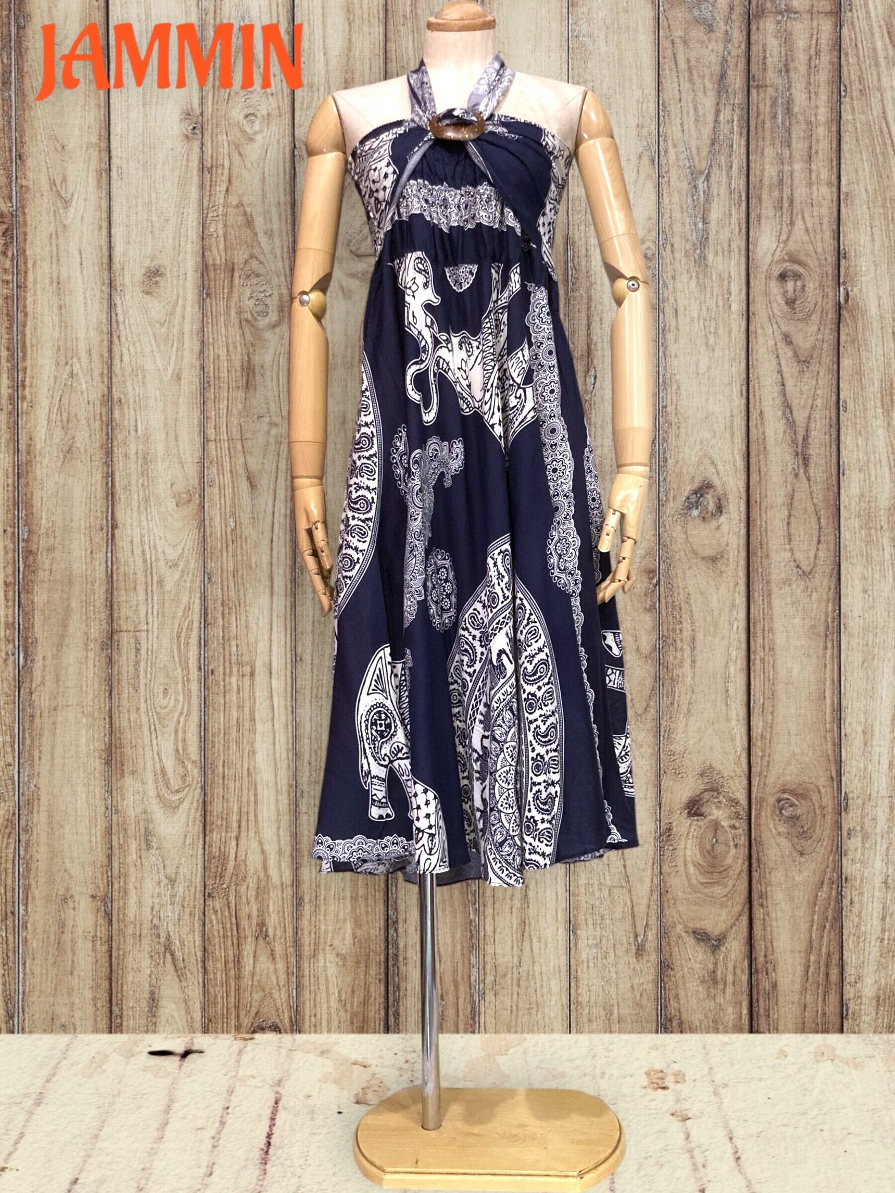 アジアンな象さん紋様柄の2wayフレアスカートです。